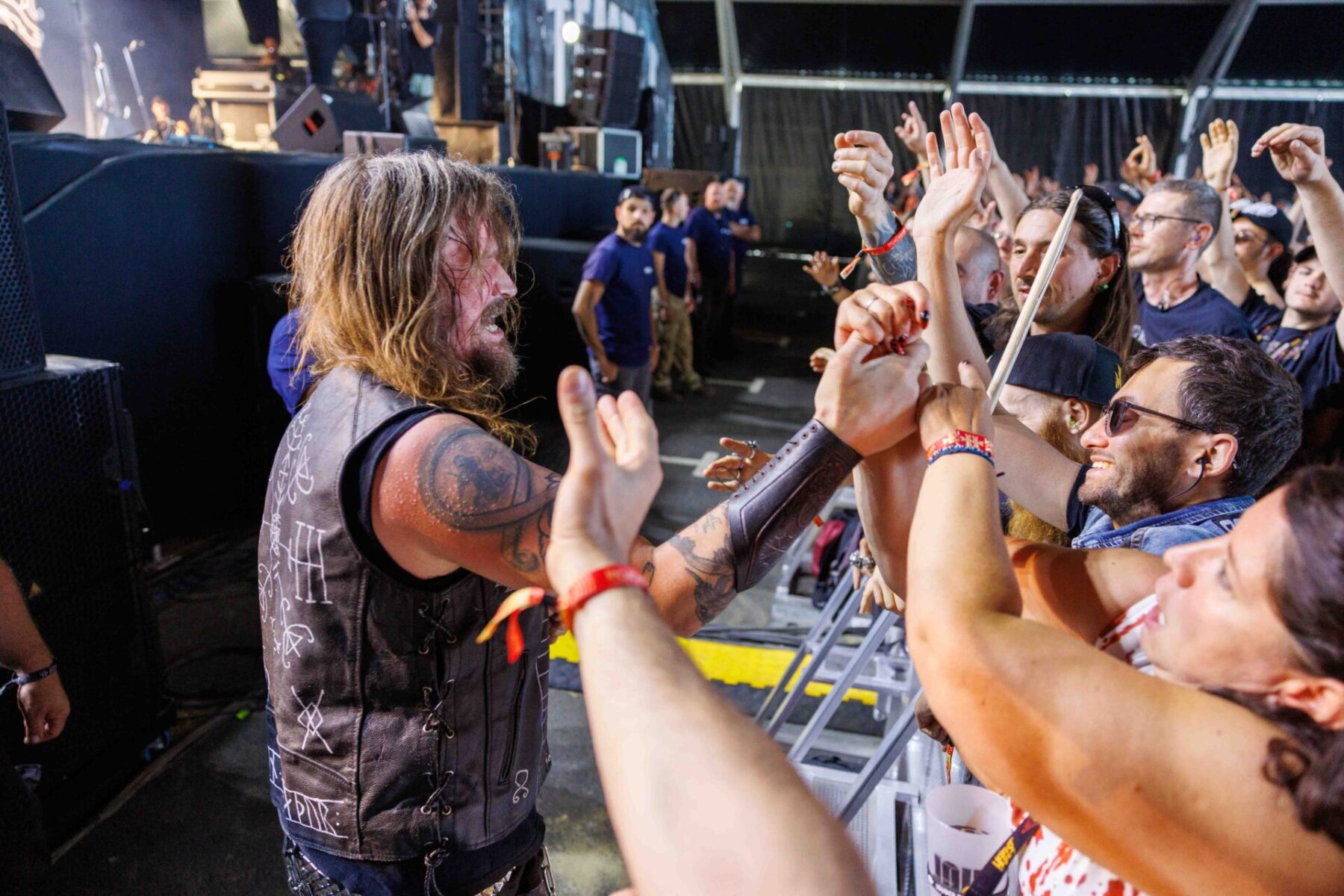 There was not a chance in the world that Slaughter to Prevail were not at the top of my list for bands to see. The demonic gutteral voice of Alex Terrible is a commanding experience leaving you with flashes of visions of the Russian giant when your eyes are closed for days. By far one of the early standout moments during Day 1 occurred during Prevail’s set, which featured Terrible’s attempt to create the largest “Wall of Death” in history. Although it’s always difficult to verify if any record was indeed broken, the viral footage of thousands of fans rushing toward each other added to the chaotic, electrifying atmosphere that Hellfest is known for. Bravely, I managed to place myself in between walls of maniacal infused metal heads as the walls closed in to snap off a few shots ( I have provided these images) Respect and trust being very clear with moshers as this spectacle alone became one of the most talked-about moments of the festival .