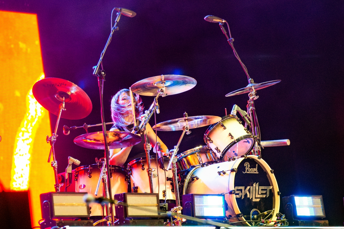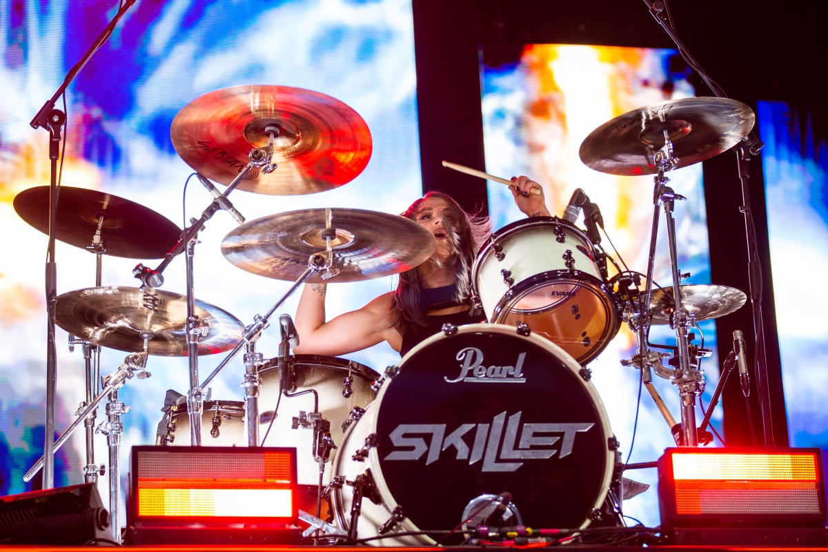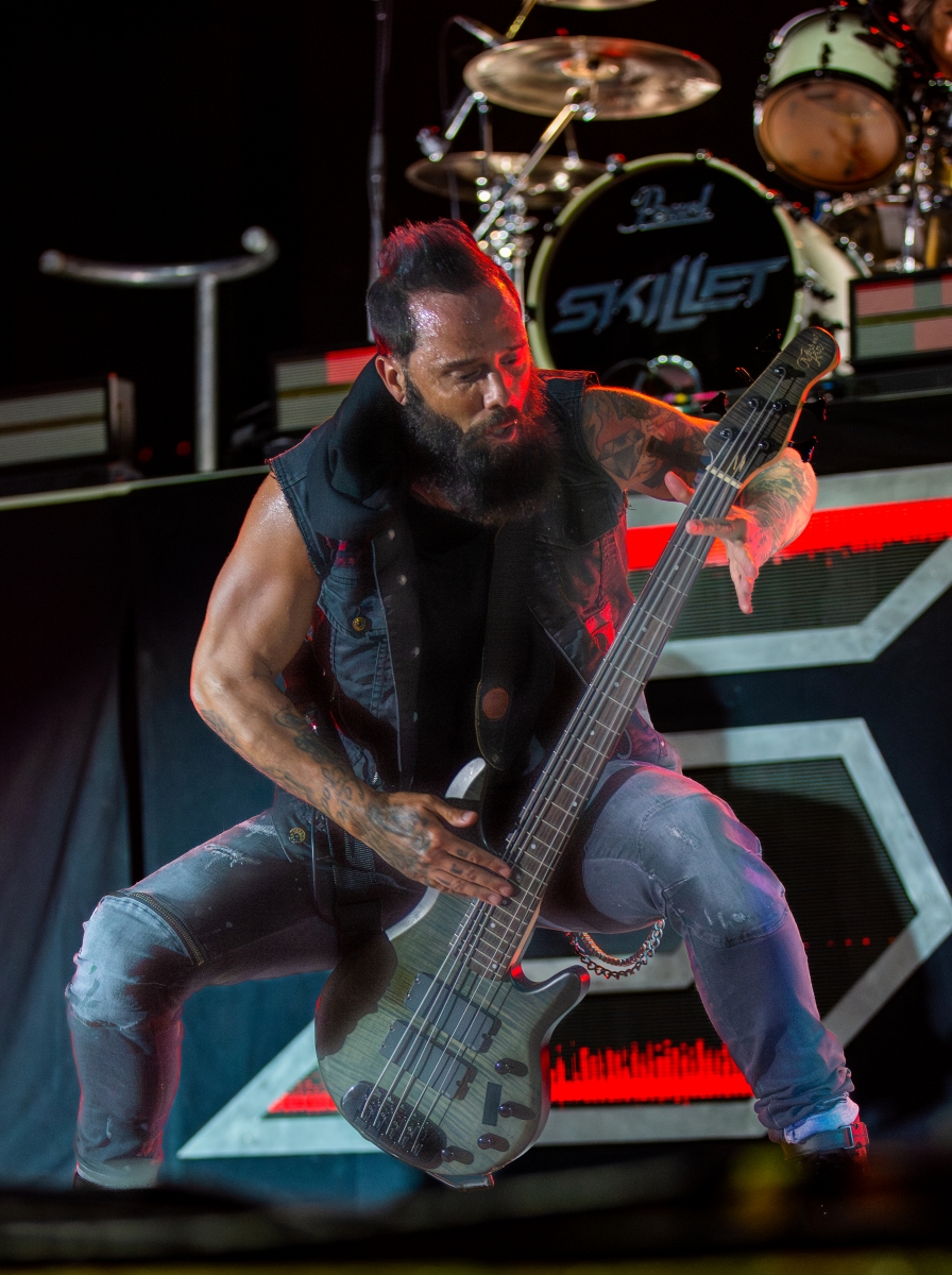 Skillet always delivers a high-energy show that’s going to keep you guessing. Korey Cooper( Guitarist) bounces all over the stage in sync with the drums while constantly shredding her guitar and keyboard. Lead Singer and Korey’s husband, John Cooper, has one of the most enticing vibes on stage. His energy and style while interacting with band members and the audience are sincere. Johns’s voice is a Gravelly bass sound that works perfectly with the other higher voices in the band. Seth Morrison‘s (Guitarist) backup vocals and heavy-hitting riffs launch the crowd itching for more every time with his fast screeching sounds and solos. Jen Ledger (Drums) is impeccable with her impressive percussion style and vocals. Seeing Jen step away from the drums to sing “Not Gonna Die” and “Hero” with John was amazing. Skillet feeds off of the crowd’s energy as they sing every word of the songs Skillet plays. The last person we must remember to talk about is Tate Olsen, the Cello player. He plays a few songs in the background with his Viking look and takes center stage for ‘Awake and Alive,” which completely harmonizes with the rest of the music. For this song, Korey and Seth get on their hydraulic platforms and go for a ride while hitting every note. It is an excellent thing to see in person.