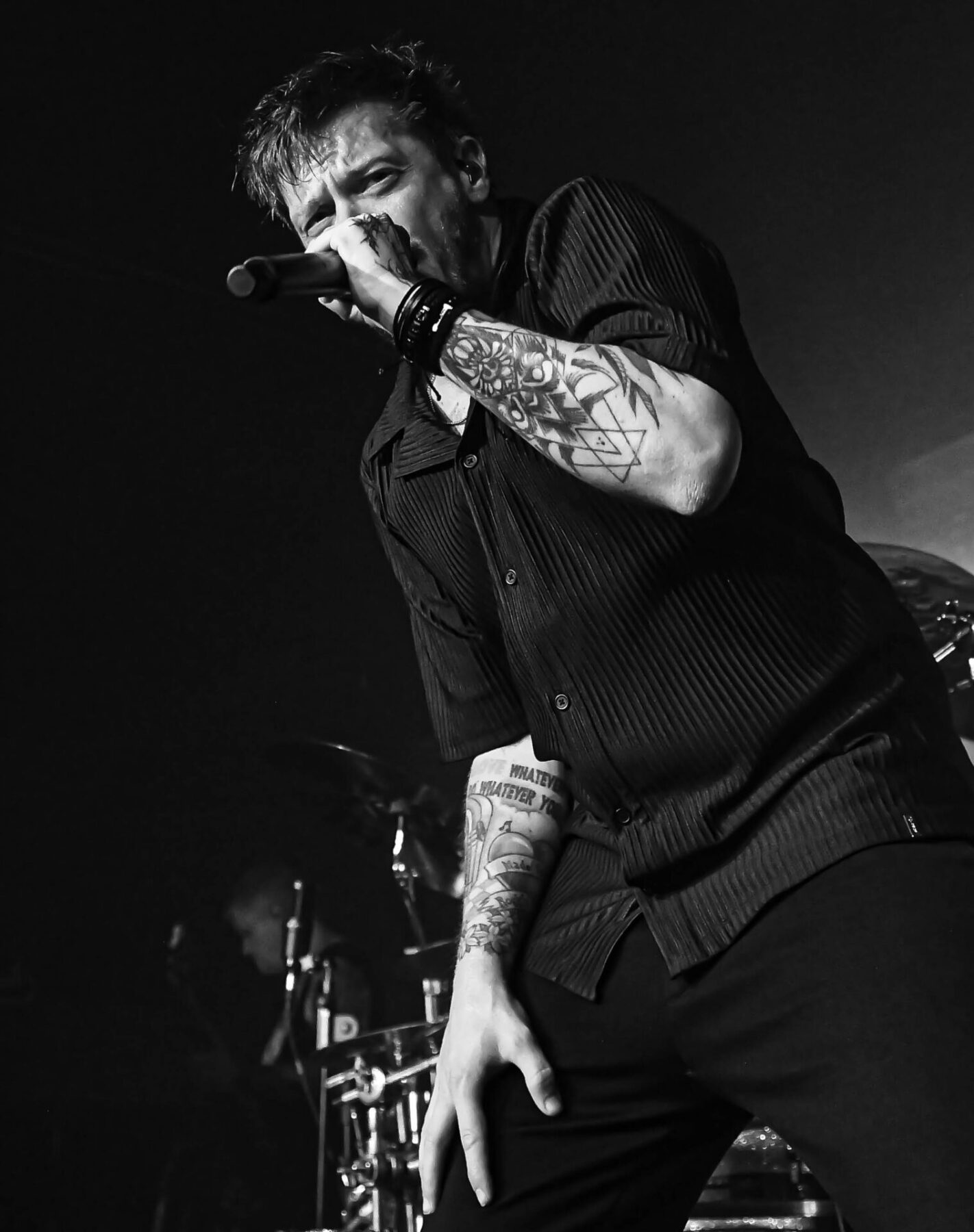 As the hauntingly beautiful choir intro of ‘Requiem’ began the atmosphere shifted. The song being well choreographed with each movement and note perfectly timed. The increased crowd interaction during this performance added a personal touch, making the audience feel like an integral part of the show. The dynamic between the vocalists was perfectly meshed, creating a powerful blend that was both aggressive and moving. ‘Requiem’ was a testament to the bands ability to balance intensity with beauty, delivering a performance that was stunning both visually and sonically.
