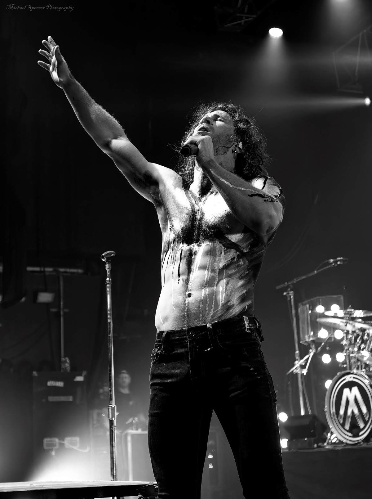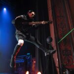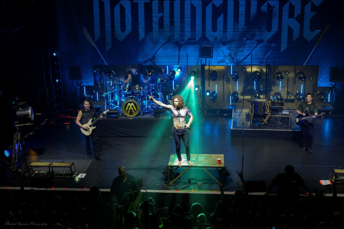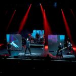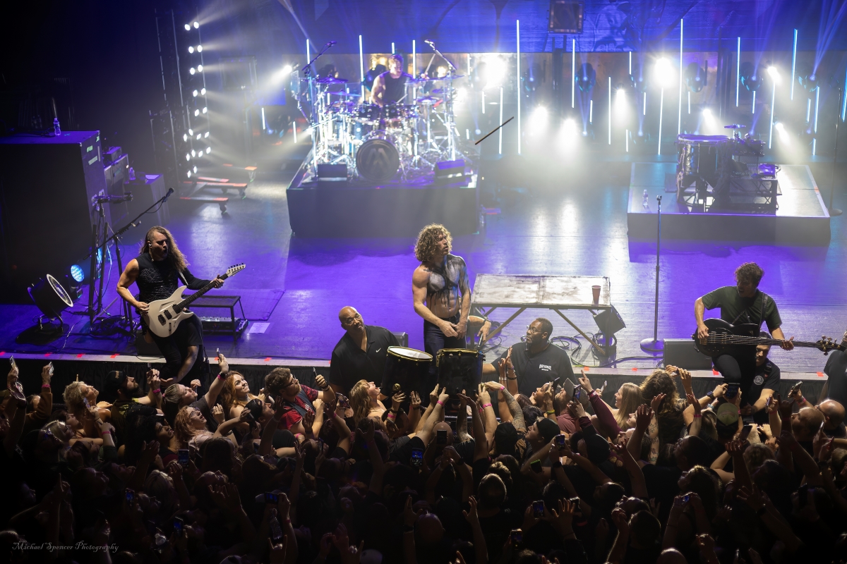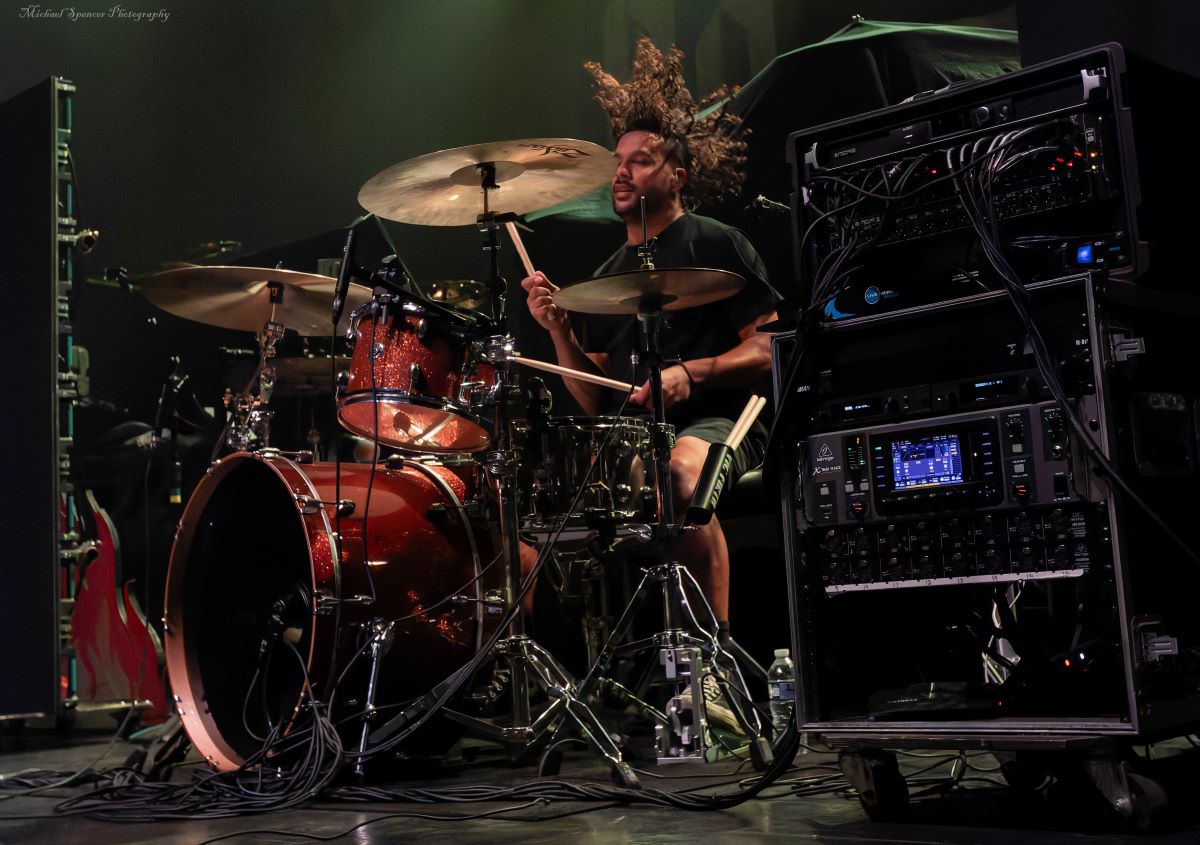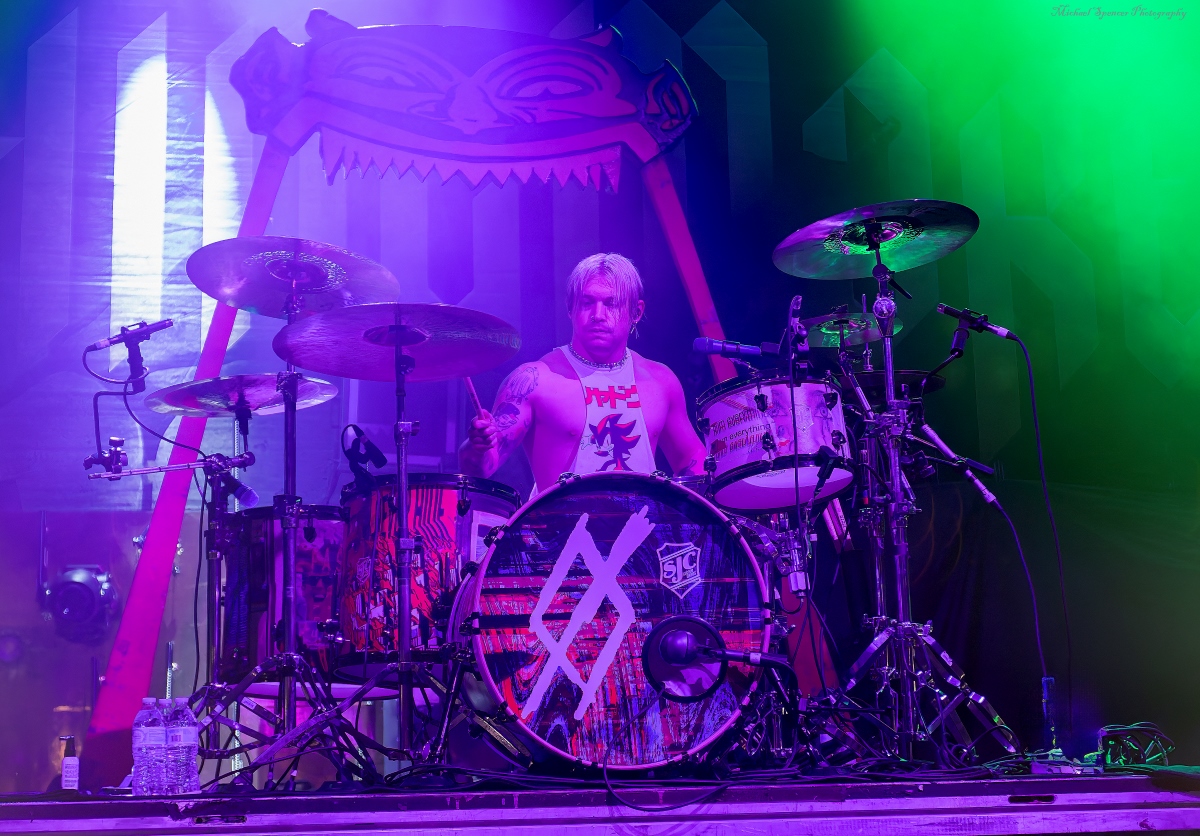 And then it was time for the band that just about everyone was there to see. It was time to scream (sing) to the songs we all know It was time to see what sort of evil engineering of a drum set the Jonny Hawkins could envision, what level of audience participation the crowd could be involved in, who in the crowd was going to help play the drums, who was going to strum the guitar and who was going to strum the bass (yes, these things really do happen). It was time for Nothing More. Nothing More formed in 2003 in San Antonio, TX (USA) and didn’t have immediate success. Lead vocalist Jonny Hawkins started out on drums when he formed the band with Mark Vollelunga on guitar, and Daniel Oliver on bass. They had several vocalist changes in the early years before Jonny moved to the front of the stage but still didn’t have the right drummer behind him and this changed when Ben Anderson joined the band in 2015. Nothing More’s stage show is always changing and an epic experience, to the tune of “what is Jonny going to do next?” In past tours he has had an articulating drum set, a painted body and to quote Jonny in an interview with LA Music Blog in 2020, it’s “some sort of twisted, rock ‘n roll adaptation of Blue Man Group — if Blue Man Group ever opened for Rage Against the Machine.” They opened with House of Sand, and had a energy filled 16 song sed, culminating with Jonny’s crew handing drums to members in the crowd to hold while Jonny, Mark and Daniel let the crowd help them pay the song. It’s something you will have to see while they are out on The Carnal (released 2024) Tour. It’s not just a show, it’s an experience