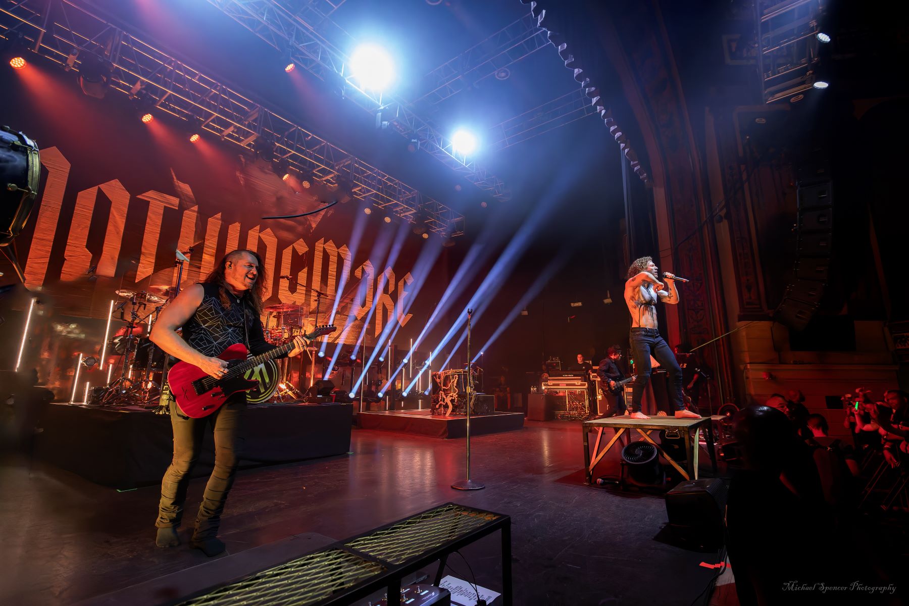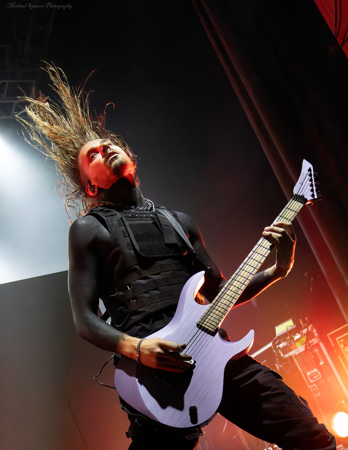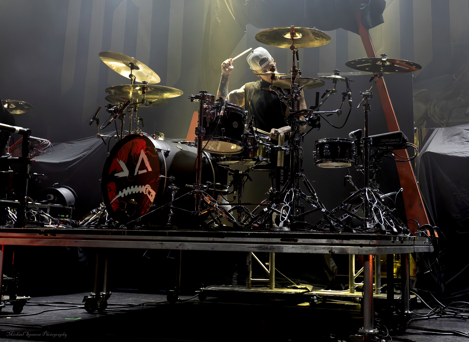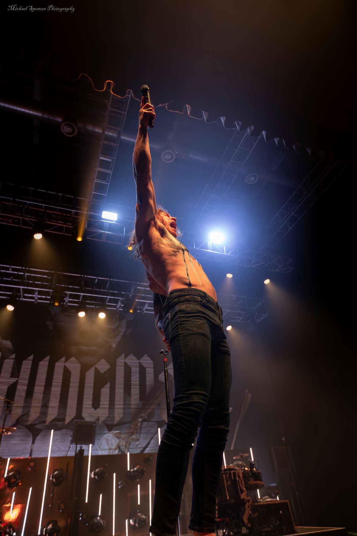 And then it was time for the band that just about everyone was there to see. It was time to scream (sing) to the songs we all know It was time to see what sort of evil engineering of a drum set the Jonny Hawkins could envision, what level of audience participation the crowd could be involved in, who in the crowd was going to help play the drums, who was going to strum the guitar and who was going to strum the bass (yes, these things really do happen). It was time for Nothing More. Nothing More formed in 2003 in San Antonio, TX (USA) and didn’t have immediate success. Lead vocalist Jonny Hawkins started out on drums when he formed the band with Mark Vollelunga on guitar, and Daniel Oliver on bass. They had several vocalist changes in the early years before Jonny moved to the front of the stage but still didn’t have the right drummer behind him and this changed when Ben Anderson joined the band in 2015. Nothing More’s stage show is always changing and an epic experience, to the tune of “what is Jonny going to do next?” In past tours he has had an articulating drum set, a painted body and to quote Jonny in an interview with LA Music Blog in 2020, it’s “some sort of twisted, rock ‘n roll adaptation of Blue Man Group — if Blue Man Group ever opened for Rage Against the Machine.” They opened with House of Sand, and had a energy filled 16 song sed, culminating with Jonny’s crew handing drums to members in the crowd to hold while Jonny, Mark and Daniel let the crowd help them pay the song. It’s something you will have to see while they are out on The Carnal (released 2024) Tour. It’s not just a show, it’s an experience