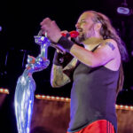 where I like to be. The curtain dropped, and I have never seen a crowd go as insane as this group did. Everyone was so tightly packed that even if you were not jumping, your body was being lifted in the air with everyone else. Crowd surfers were going over our heads in waves, and mosh pits erupted throughout the venue in multiple places. Korn blasted hit after hit for one of the best shows they have ever performed. With old hits Korn has not played in years, like “Helmet In The Bush,” along with new songs and a wee bit of bagpipes sprinkled in. How could Jonathan Davis properly do a 30th-anniversary tour without his bagpipes! Korn also dedicated their song “Blind” to producer Ross Robinson, saying they couldn’t have done any of this without him. Korn closed out the show with their final song, “Freak On A Leash,” with Amy Lee from Evanescence joining Jonathan Davis on stage for a fantastic end to the night.