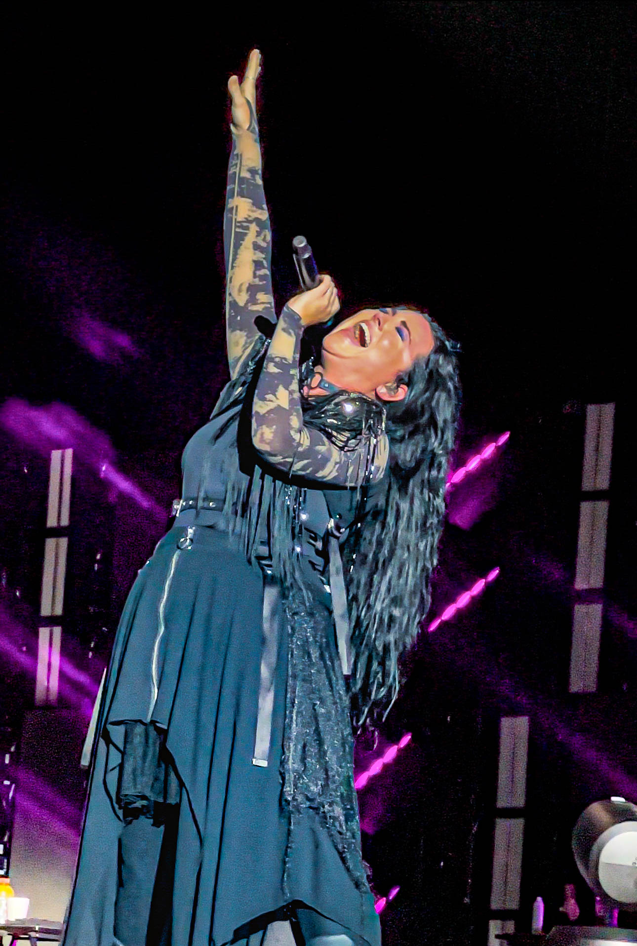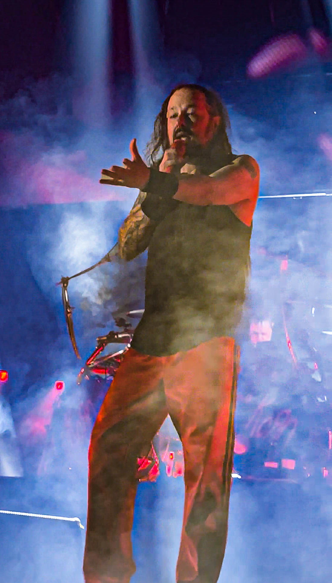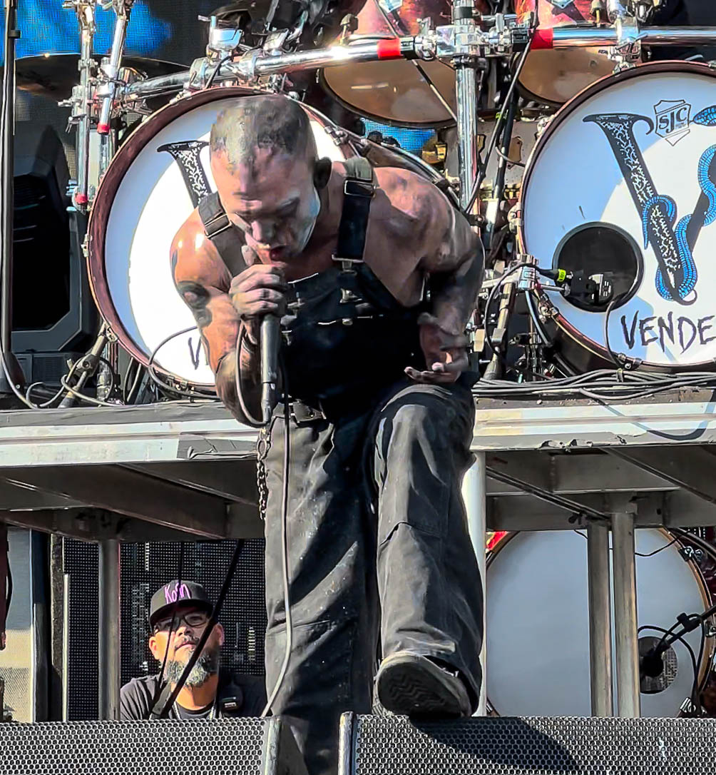 where I like to be. The curtain dropped, and I have never seen a crowd go as insane as this group did. Everyone was so tightly packed that even if you were not jumping, your body was being lifted in the air with everyone else. Crowd surfers were going over our heads in waves, and mosh pits erupted throughout the venue in multiple places. Korn blasted hit after hit for one of the best shows they have ever performed. With old hits Korn has not played in years, like “Helmet In The Bush,” along with new songs and a wee bit of bagpipes sprinkled in. How could Jonathan Davis properly do a 30th-anniversary tour without his bagpipes! Korn also dedicated their song “Blind” to producer Ross Robinson, saying they couldn’t have done any of this without him. Korn closed out the show with their final song, “Freak On A Leash,” with Amy Lee from Evanescence joining Jonathan Davis on stage for a fantastic end to the night.