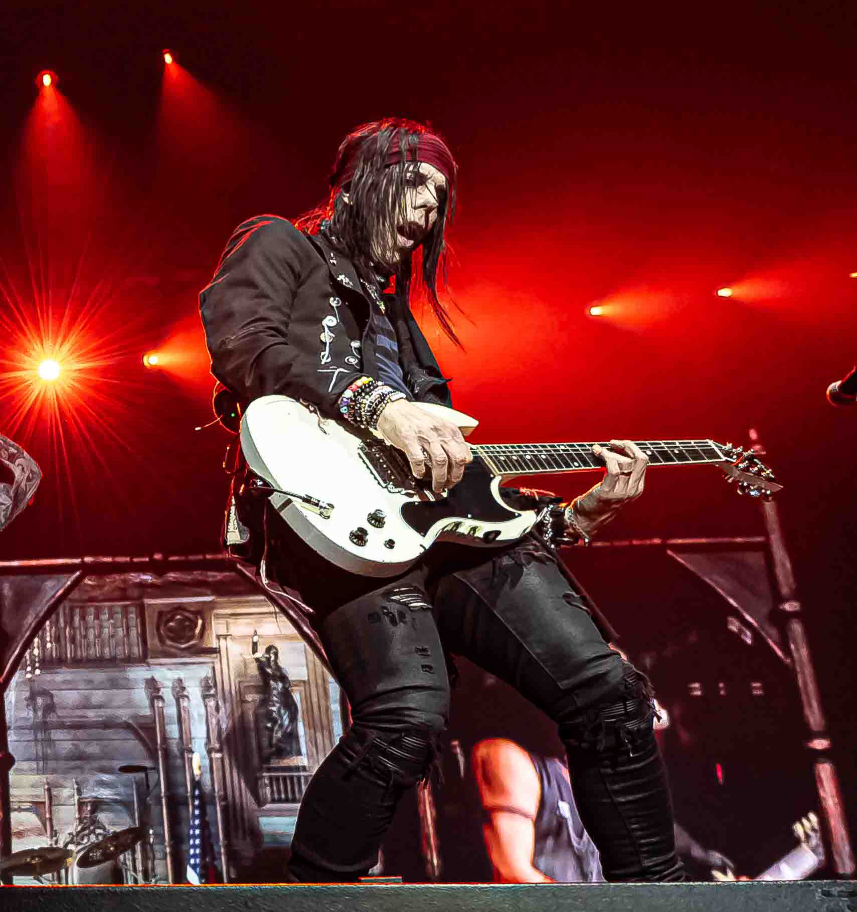 Alice hit the stage around 9.15pm complete with a giant newspaper headline proclaiming Alice is banned in England. There’s much pomp.. and lots of guitarists! Lots of makeup, and all of what you’d expect from an Alice Cooper show. 25 tracks ensue, with barely a gap