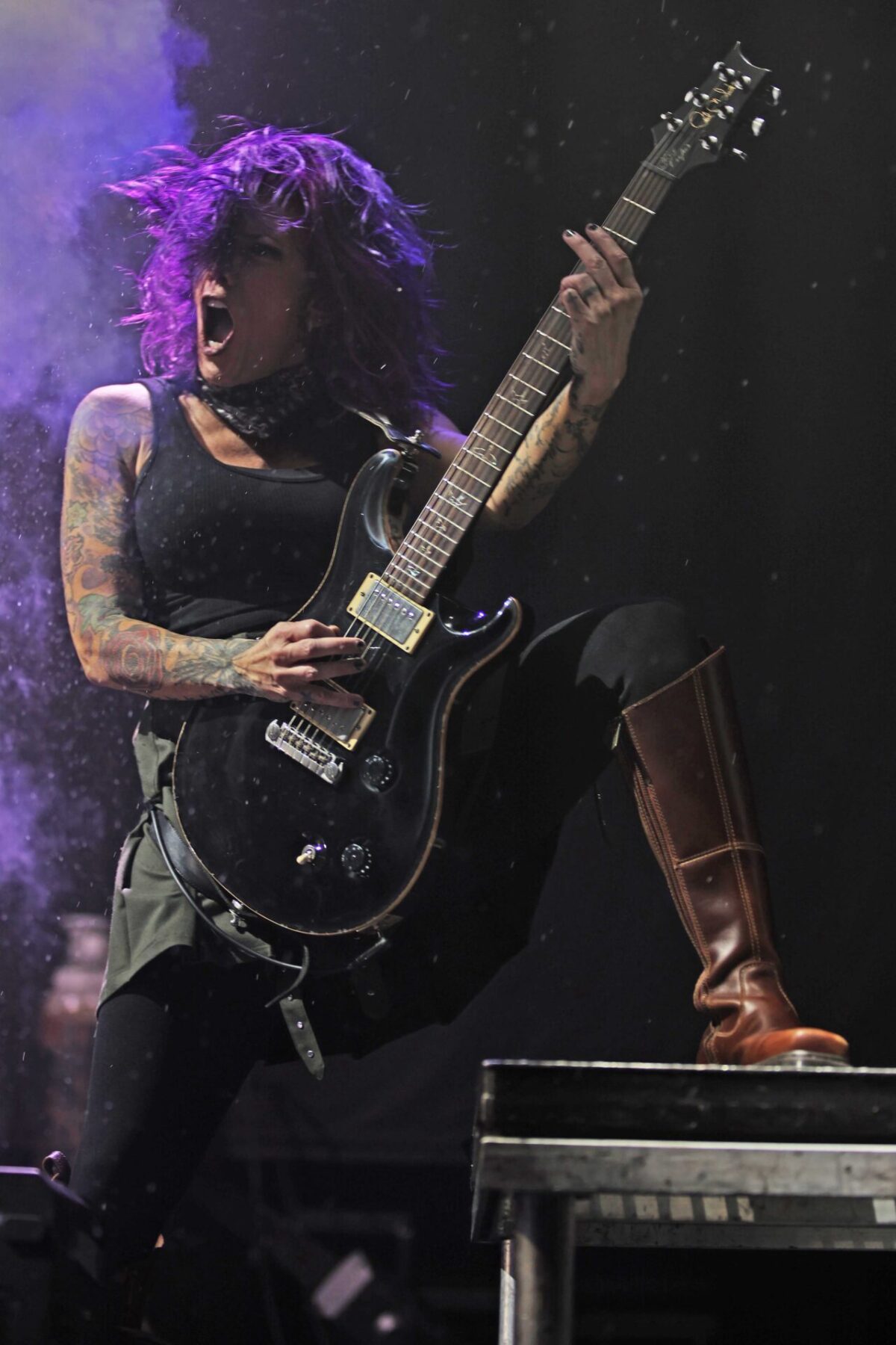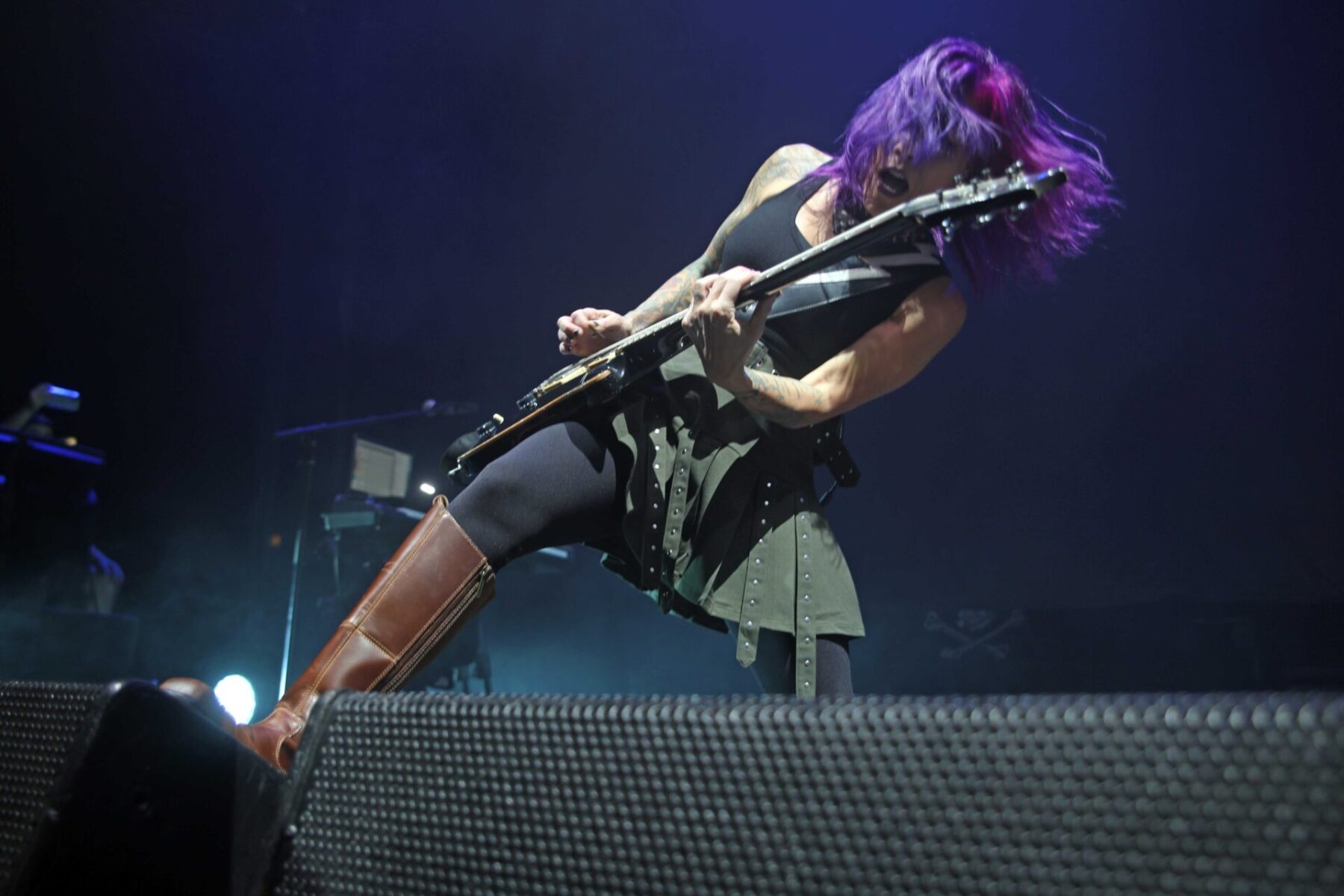 Skillet, formed in 1996, are an American Christian rock band formed in Memphis, Tennessee and set about giving a fantastic energetic performance at the bp pulse live arena. The band currently consists of husband and wife duo John Cooper (lead vocals, bass) and Korey Cooper (rhythm guitar, keyboards, backing vocals) along with Jen Ledger (drums, co-lead vocals) and Seth Morrison (lead guitar)