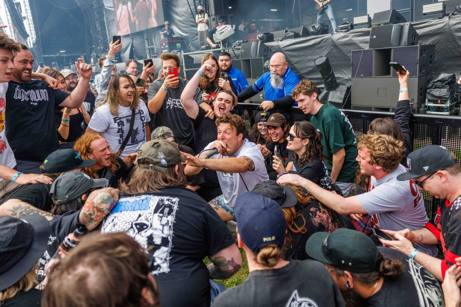 POLARIS Doing Australia proud at Knotfest , Polaris has widely risen in prominence within the heavy music scene earning acclaim for their dynamic sound and emotive lyricism. It was a tough challenge to keep your eyes up with frontman Jamie Hails’s hometown performance  as he carved his way all over the stage  proving why they’re one of Australia’s premier metalcore acts. Their emotionally charged melodies, crushing breakdowns, and tight musicianship ignited the crowd. The energy was electric, with passionate singalongs and an intense mosh pit, making their set a standout moment of the festival and a true celebration of Aussie heavy music.