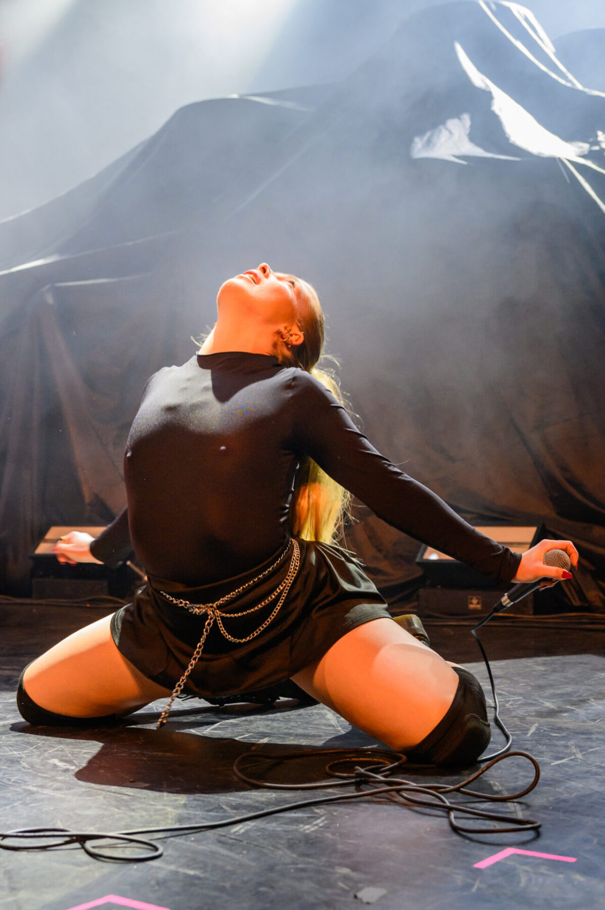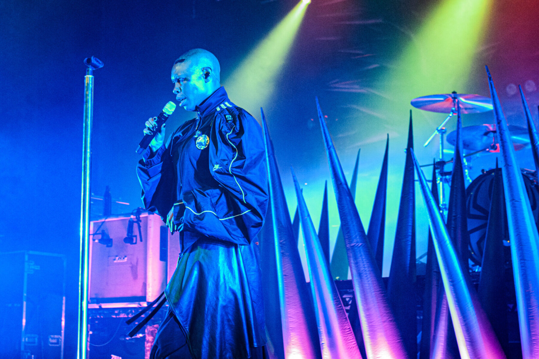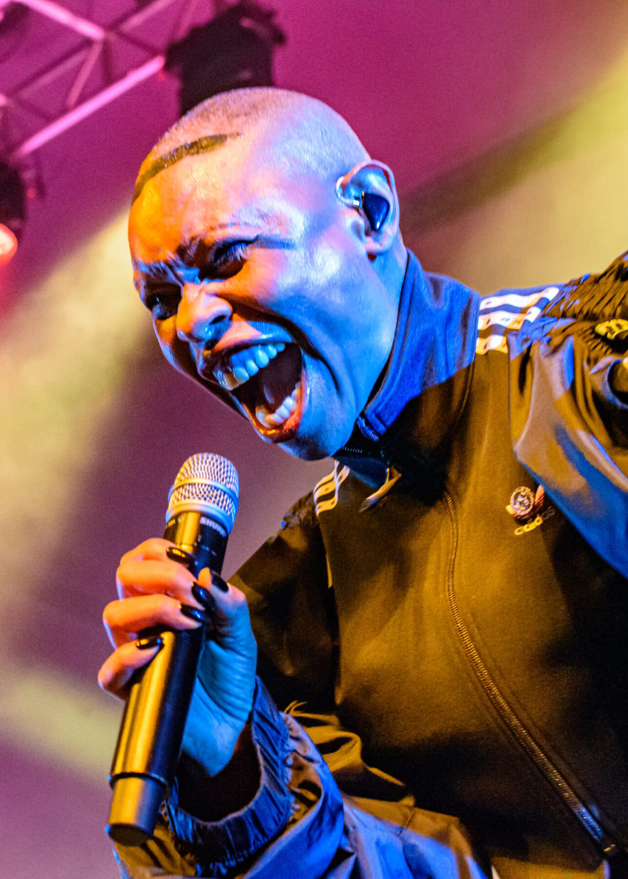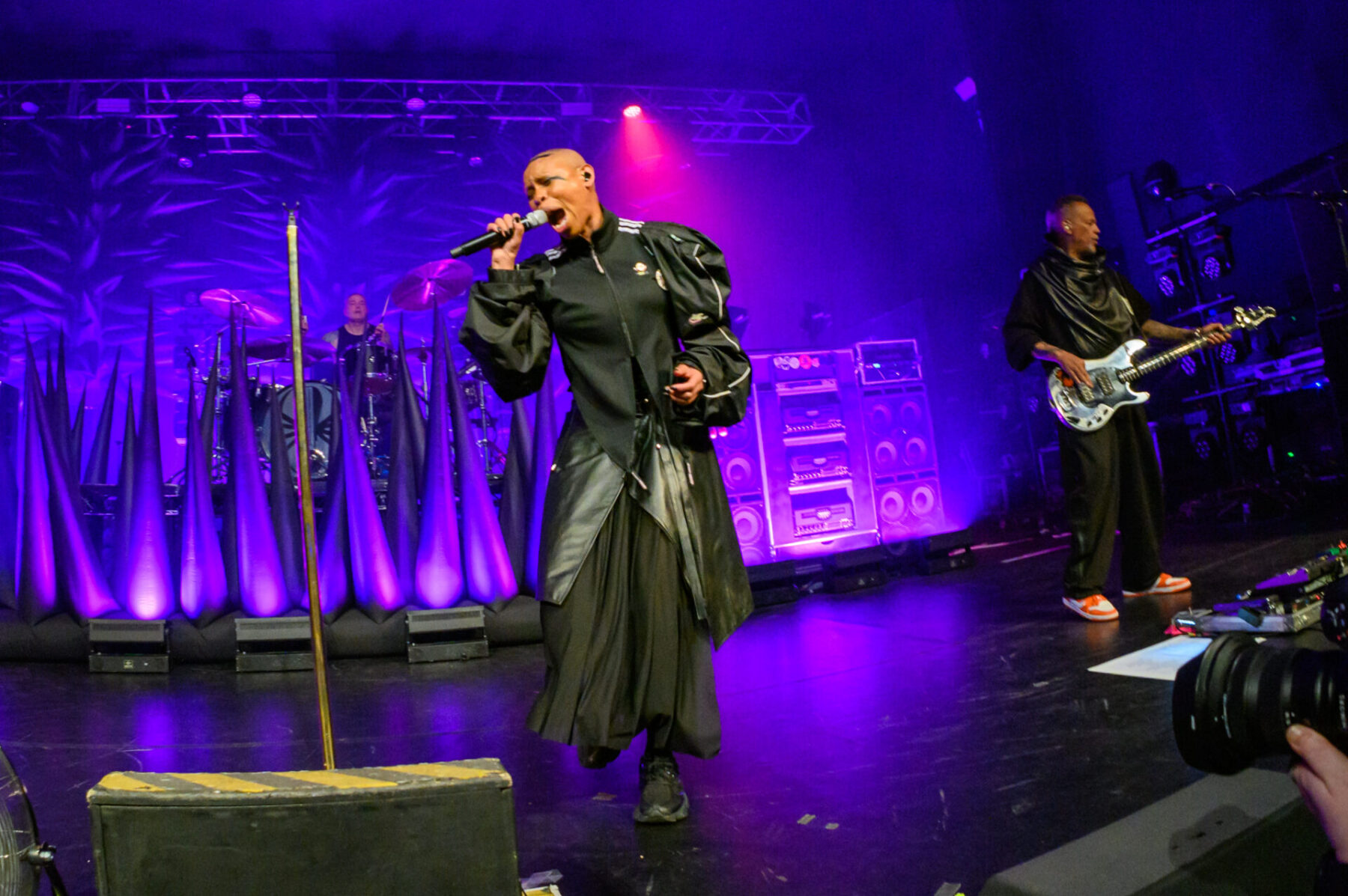 Musically the show is driven by an almost innocuous bass player to the right of the stage, but his output really keeps everything tight. Richard ‘Cass’ Lewis I believe his name is, and it needs acknowledging how much of an important part of Skunk Anansie he is. Interestingly at the venue the sound engineer seems to know this and has the volume and depth of his playing at a level where it reverberates through the crowd as something literally palpable. He gets an acknowledgement on stage as well as something of a solo, albeit small, on the 17th song of the night, “Cheers”. The guitarist Martin Kent, also gets the same opportunity on a couple of tracks, most notably on tracks 14 and 15, “Yes It’s Fucking Political” and “Tear the Place Up”, but this concert is very much a band performance, and as such it feels like solos are not something which fit within that dynamic, which is what makes both of these demonstrations of skill on their instruments worth noticing.