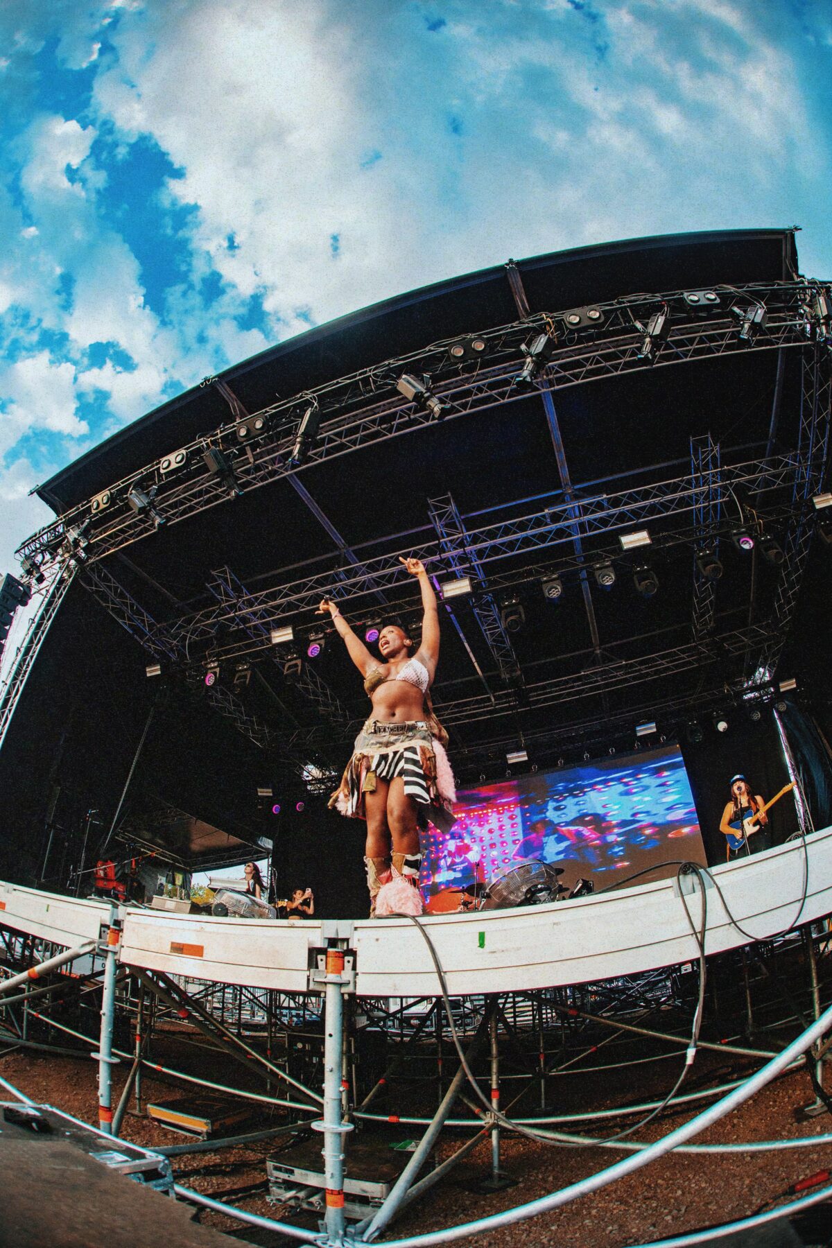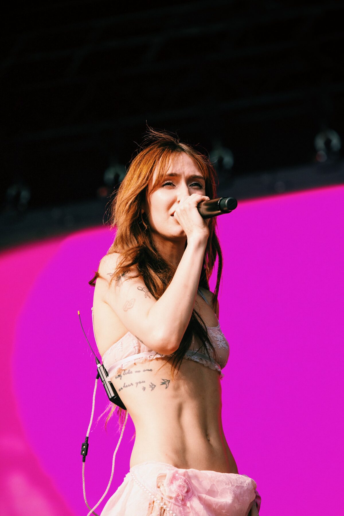 Peach’s set was energetic, and heartfelt. Her vocals were strong even as she powered through the high heat. Her crowd engagement was noticeable too, as she made her fans feel a part of something special. Her set was filled with a whirlwind of vulnerability, and pure connection with her fans. Playing on the second stage of the festival and looking out at the sea of people there to see her perform, she was still able to make her set feel intimate. Peach PRC didn’t just win over the people of Bludfest, she turned the stage into her own pink world and everyone there was glad to be a part of it.