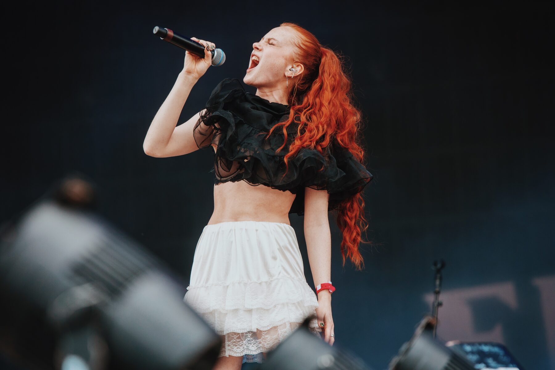 Elin Halls brought a moment of calm to Bludfest’s chaos with a set that was delicate, raw, and deeply moving. Opening the main stage didn’t stop her from commanding attention — her soft, ethereal vocals had the crowd slowly gathering, pulled in by the quiet intensity of her songs. With her guitar and minimal backing, her set felt almost confessional, like pages torn straight from a diary. Between songs, she spoke gently about self-discovery and mental health, which only made her connection to the crowd feel more personal. It was a set that didn’t need fireworks — just honesty and emotion, and Erin delivered both effortlessly.