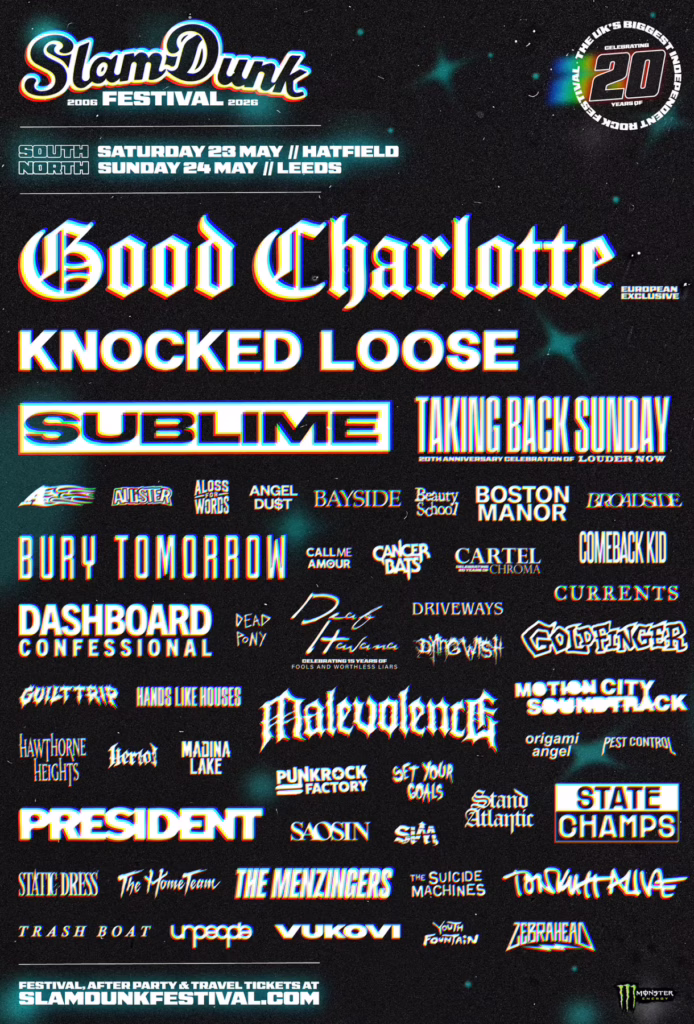 Just when you thought Slam Dunk Festival 2026 couldn’t get any bigger, this week now sees the festival drop the final wave of bands. Bringing a stacked list of additions: Knocked Loose State Champs Boston Manor Trash Boat Malevolence Static Dress Bayside Comeback Kid Deaf Havana Madina Lake blending hardcore, pop-punk, emo and everything in between. Heavy hitters, scene staples, and newcomers ready to steel the show. Whether you’re diving into chaos at the front or just standing screaming every word, you will not be disappointed.
