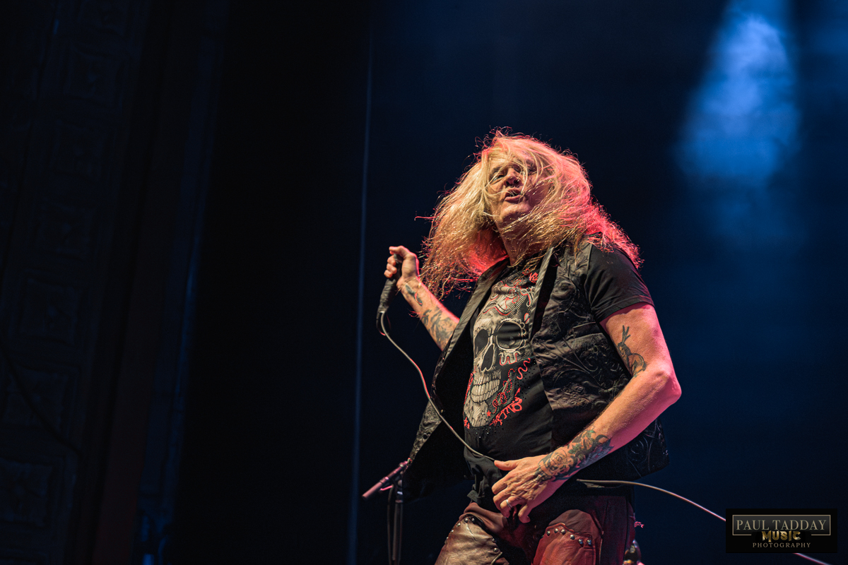 As the lights dimmed, anticipation hung heavy in the air. When Sebastian Bach finally graced the stage, greeted with roaring applause from a sea of avid fans. Clad in his signature rock attire, Bach wasted no time launching into the more recent “What Do I Got To Lose?” before cracking into “Slave To The Grind” and “The Threat”. Baz’s voice echoed through the historic venue, capturing the essence of the album in all its glory. The setlist was interspersed with a selection of classics from Skid Row’s debut album, notable Skid Row classic from the iconic opening track to the unforgettable “Monkey Business” and soulful “Wasted Time,” Bach performed every song with the same intensity and passion that made the original album a classic. With his energetic stage presence and undeniable charisma, he engaged with the audience, sharing anecdotes and expressing gratitude for their unwavering support over the years.