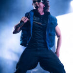 As Rob addressed the crowd for the first time it was evident he, along with the rest of the band, were visibly taken aback by the crowd’s enthusiasm, his first response simply being “This shit is looking insane”. He then spoke about how long it has been since they played in Nottingham, and shared the story of the last time they played this very arena, and how they filmed the ‘Technology’ music video here, and had a 20 minute circle pit around the ‘Technology’ cowboy because of it! As they launched into the song right after the story, the circle pits began once again, the green laser lights were mesmerising.