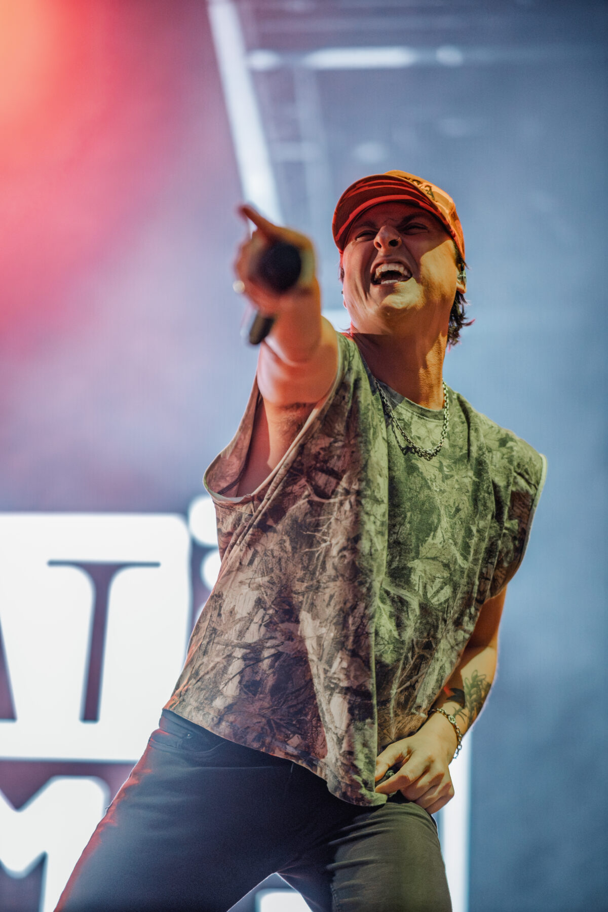 Magnolia Park stormed onto the stage with energy that almost felt too much for their early time slot. They launched right into fan favourite ‘Misfits’ followed by a trio of tracks from their latest album ‘VAMP’. The commanded the crowd with ease throughout the entire 30 minute set, asking everyone to clap along, jump, and even raise their middle fingers for a “Fuck Trump” chant at one point.
