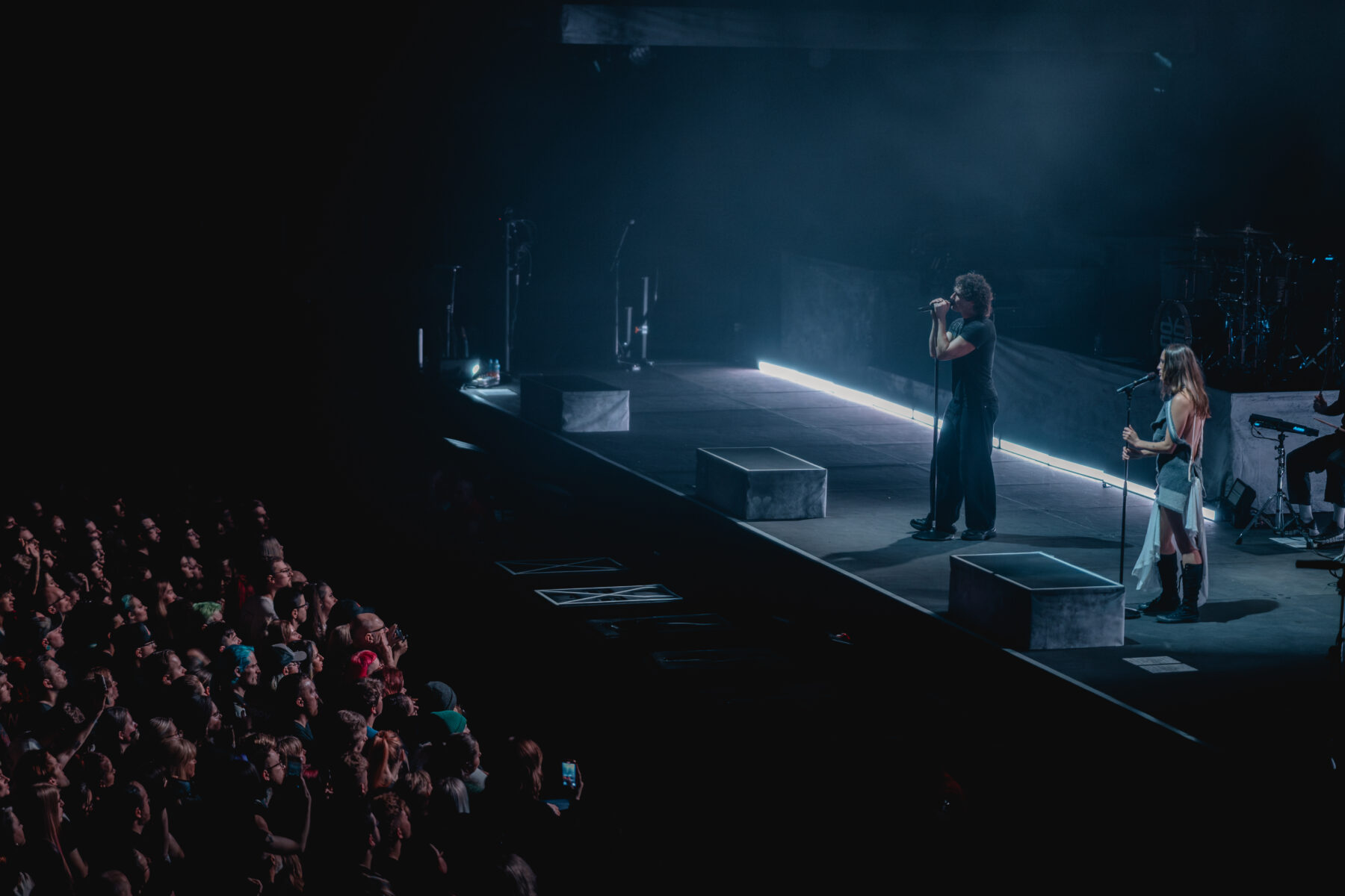 seating block for an acoustic version of ‘You Wanna Know’. They made their way down to the seats directly next to me, and a couple got engaged right before the song. The stripped back track perfectly soundtracked the moment, and showcased Ron’s unreal vocals, it definitely made an unforgettable memory for not only the happy couple, but the thousands of people in the crowd. Continuing with the acoustic songs, Yonaka’s Theresa Jarvis then joined Rob back on stage to perform ‘Further’ and I had goosebumps the whole time. Their vocals perfectly complement one another and it’s by far my new favourite version of the track.