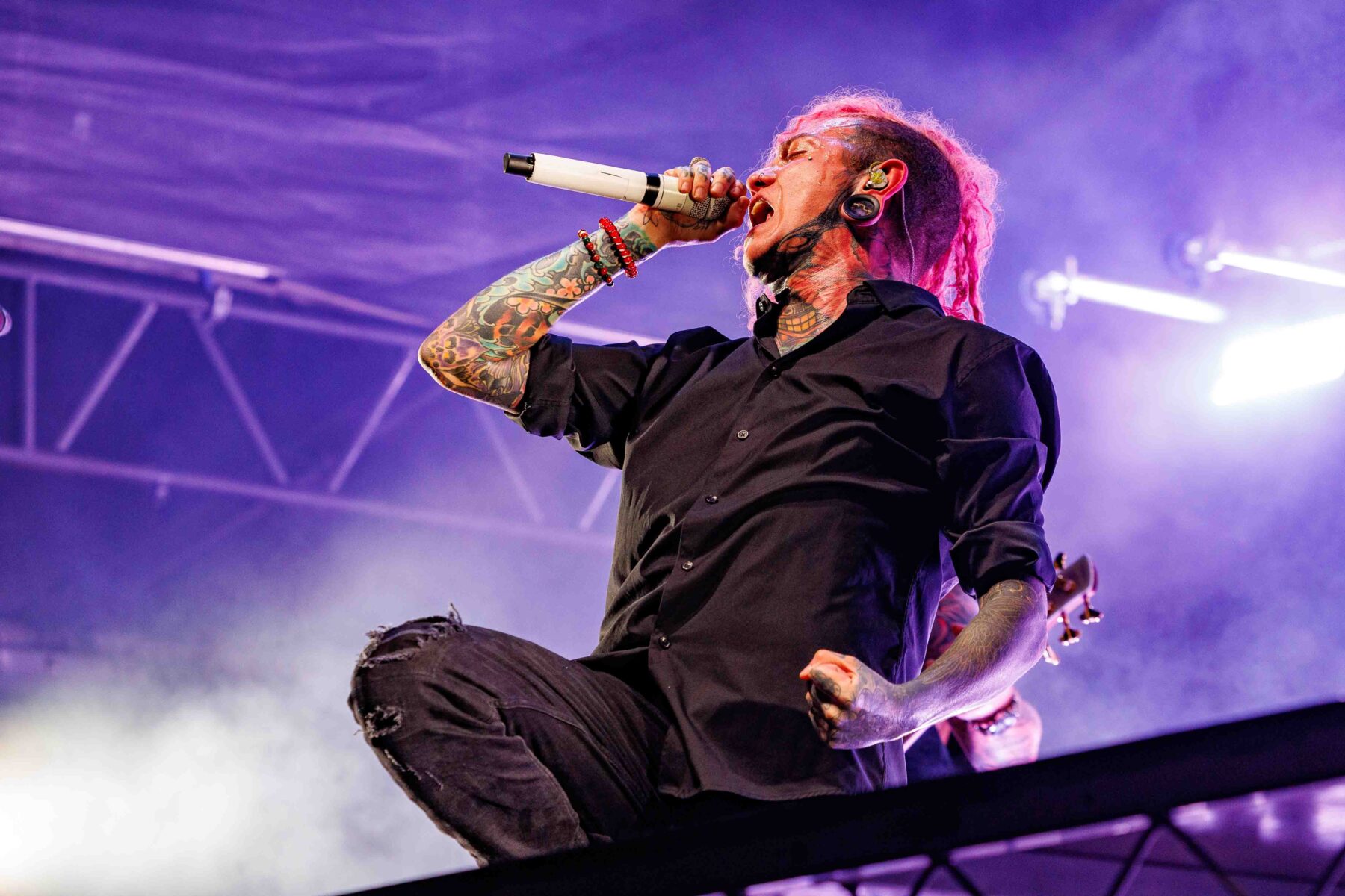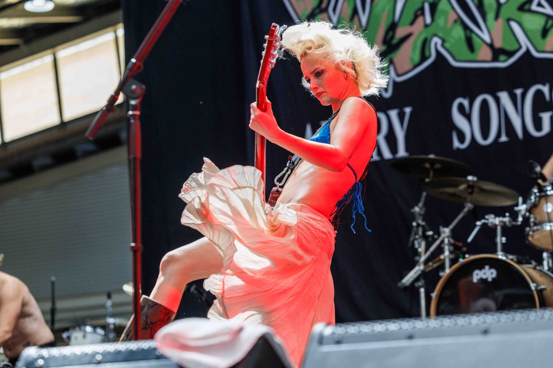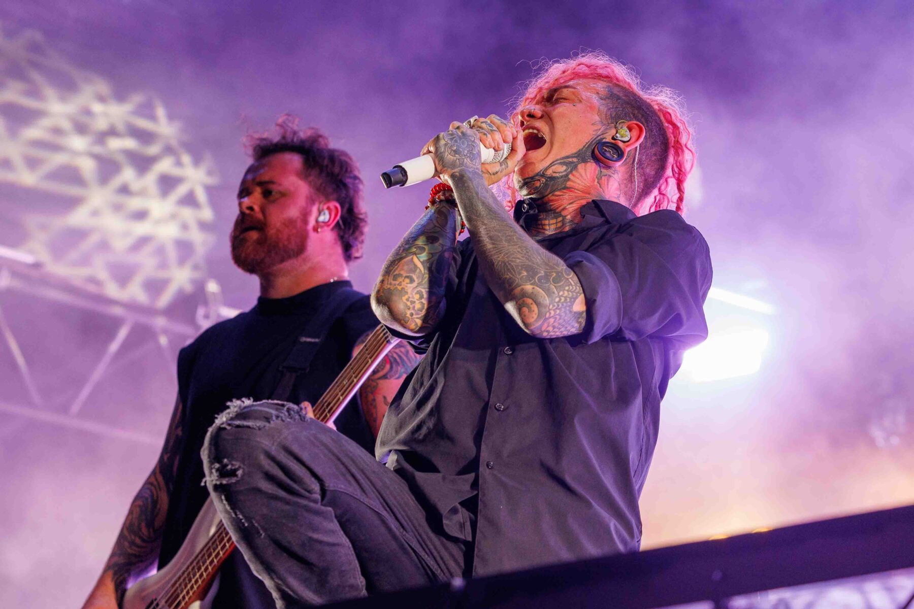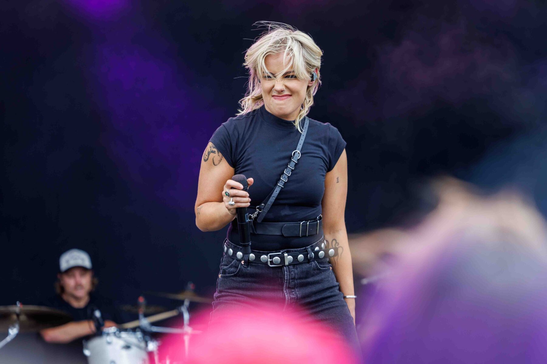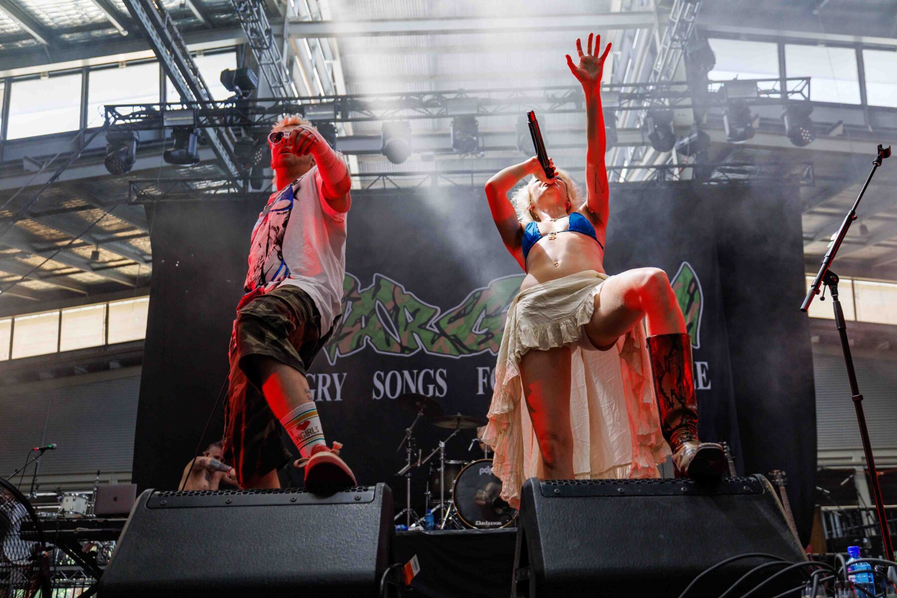 Glitter, pink explosions, and unapologetic confidence dominated when Scene Queens Ohio born Hannah Collins kicked off GTF on the second of two main stages. Her bimbocore fusion of sugary visuals and hard-hitting riffs created a thrilling contrast that resonated particularly well with younger festivalgoers. Her charisma was infectious, her message empowering, and the result was a set that stood out for both style and substance.