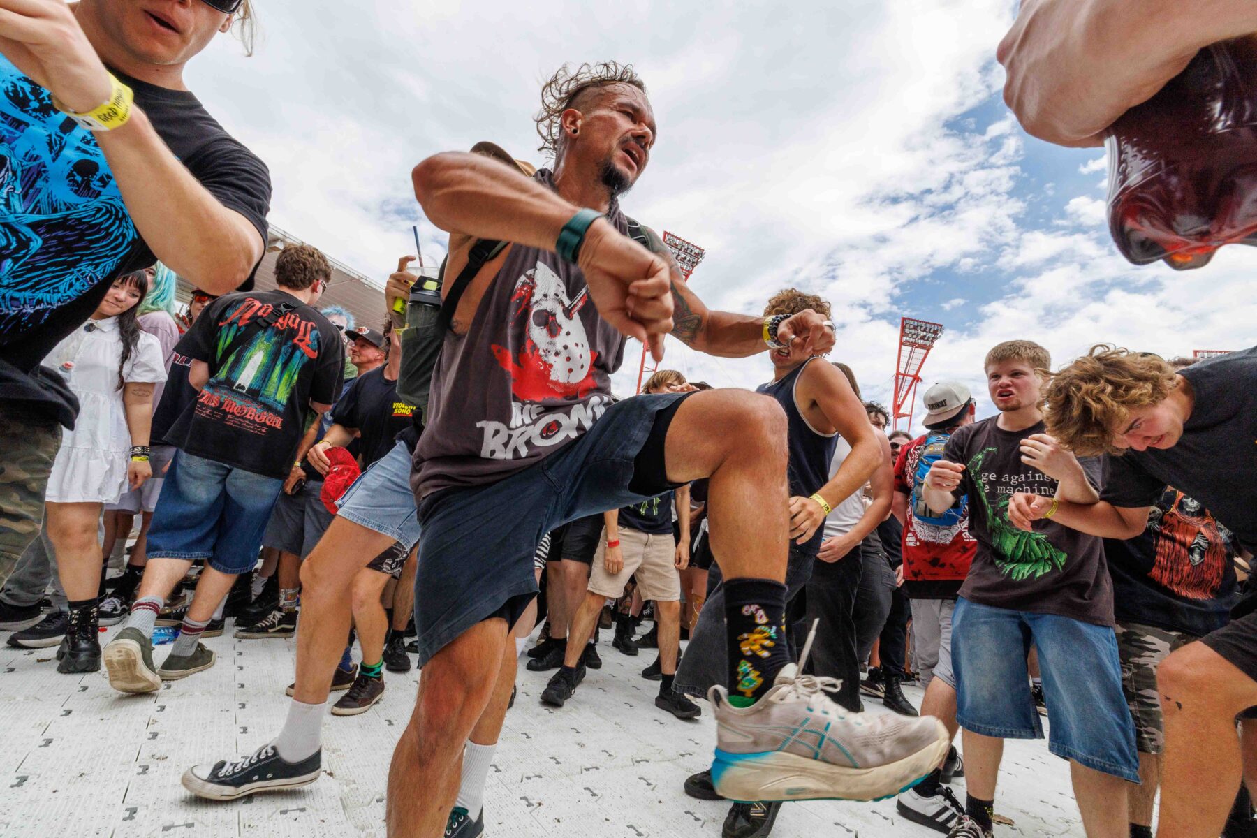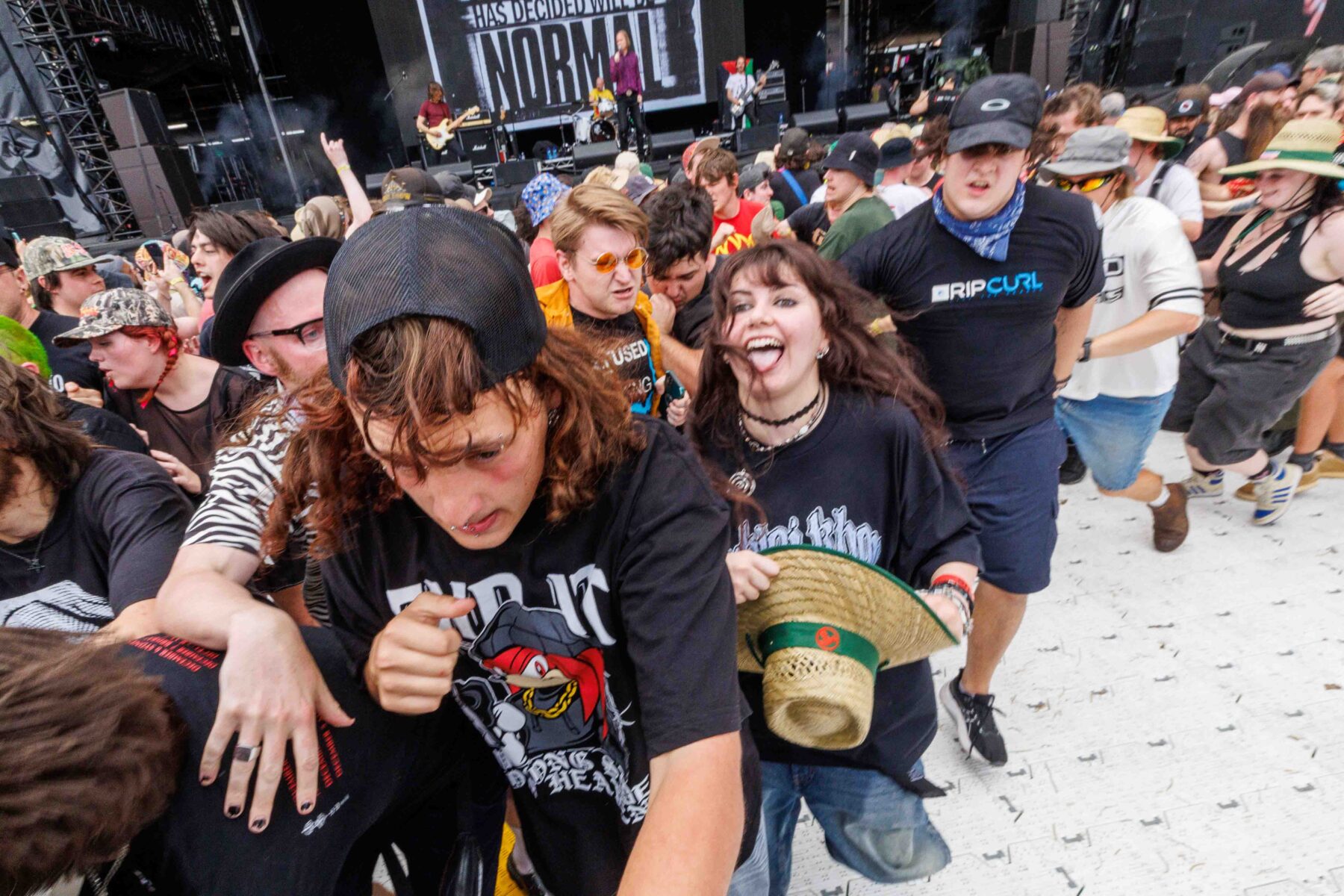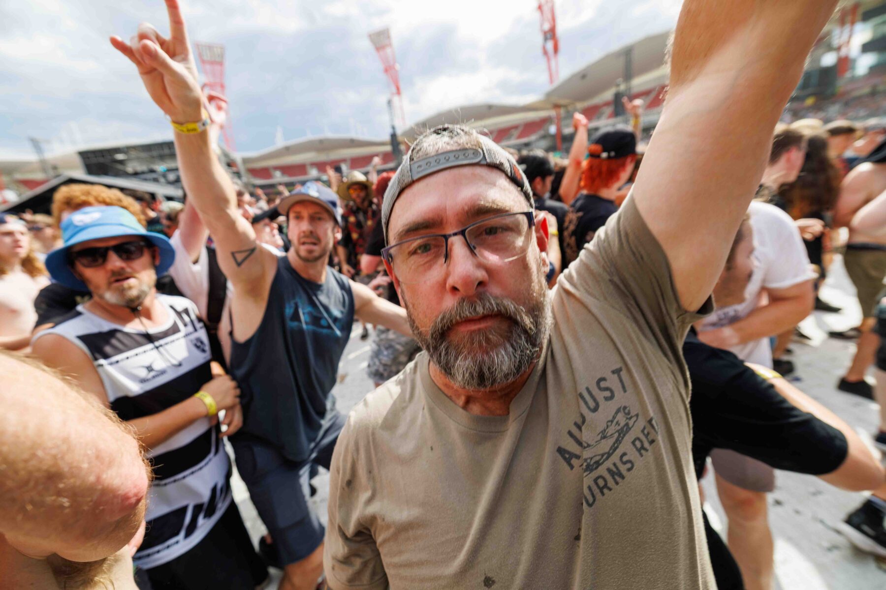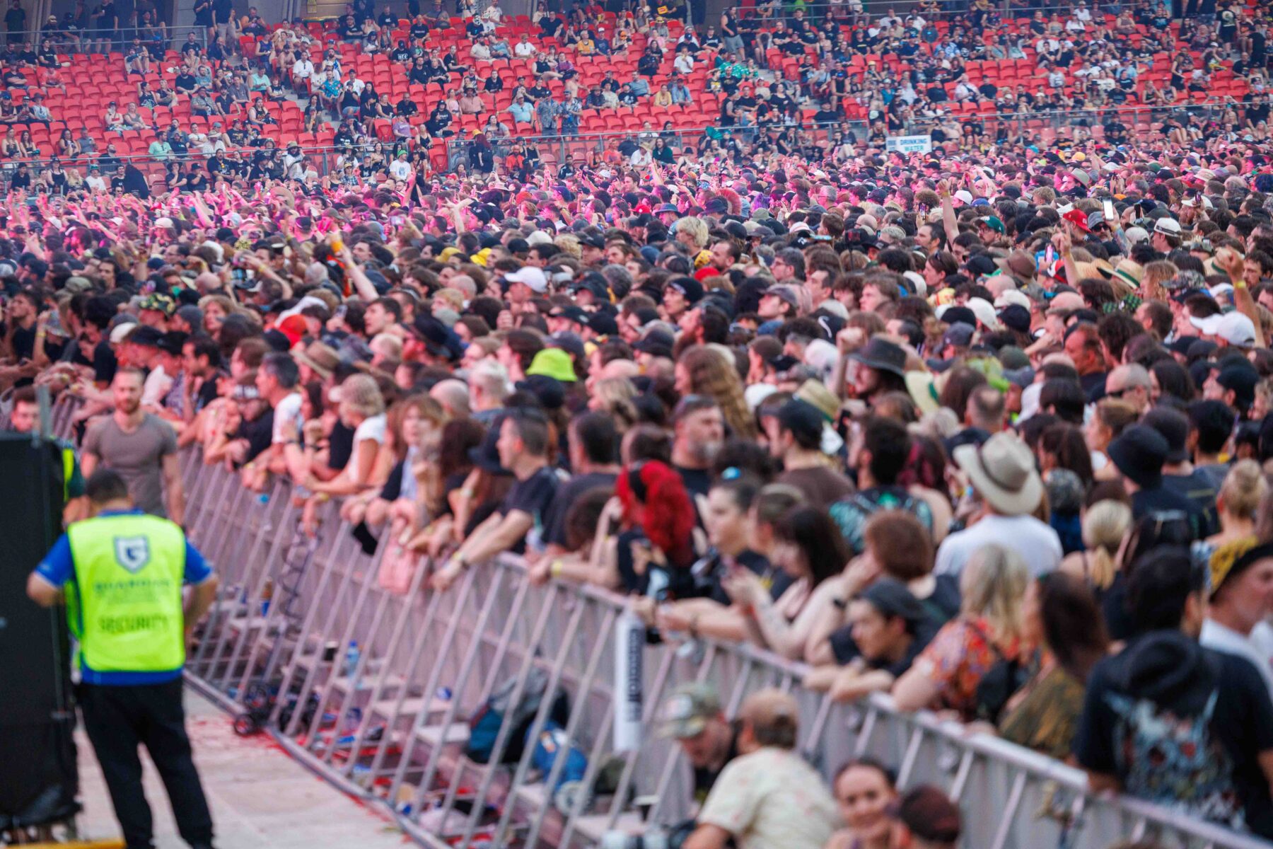 The day began under a merciless wave of heat, pushing everyone’s sunscreen to its absolute limit. Early sets became something of a badge of honour for both fans and bands, but the festival didn’t buckle. Hydration stations, shade pockets, and the occasional mist spray kept the masses alive long enough for the weather to finally turn in their favour. By late afternoon, a cool change drifted in, relieving the crowd and igniting a second wind that carried straight through the night. As temperatures dropped and stage lights rose, the Showgrounds transformed into a vibrant, electric nightscape—exactly the setting you want for a festival hitting its stride.