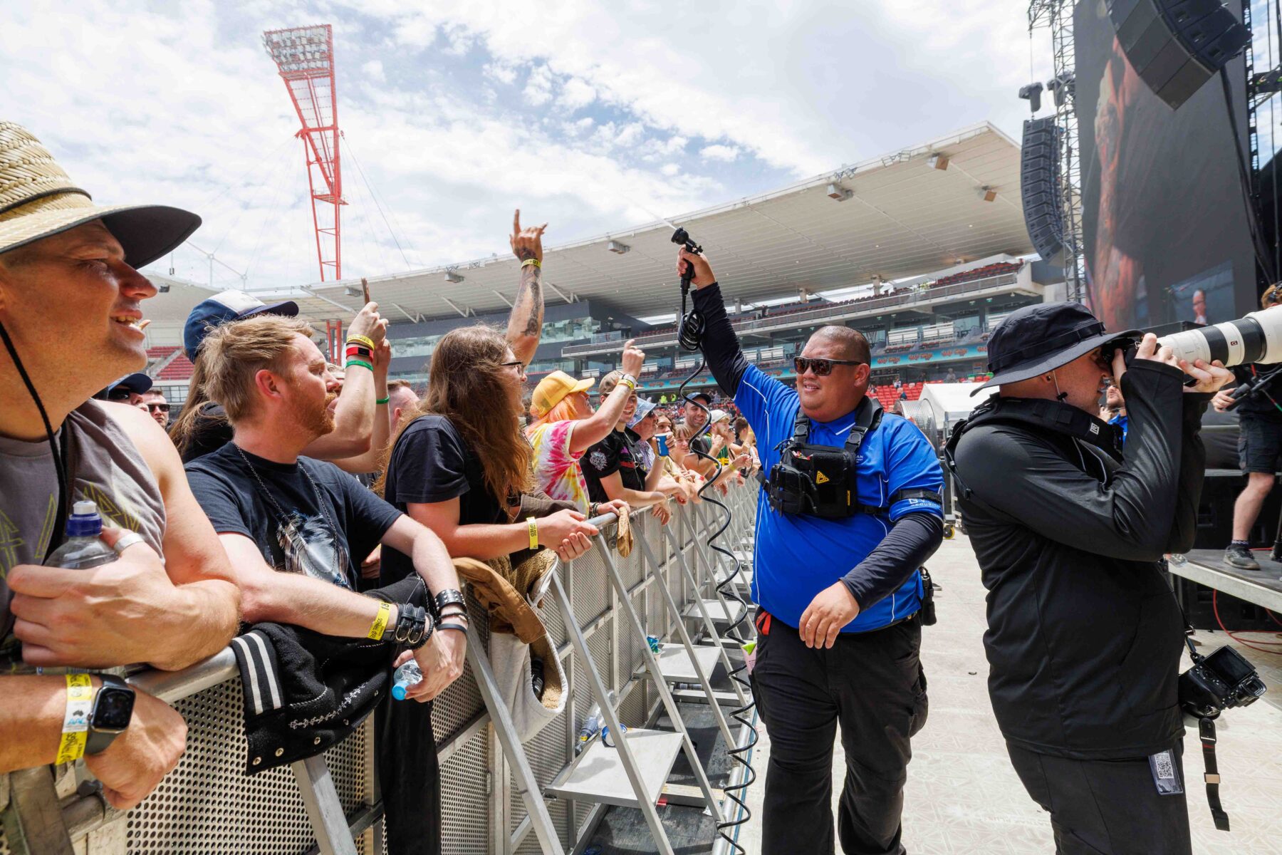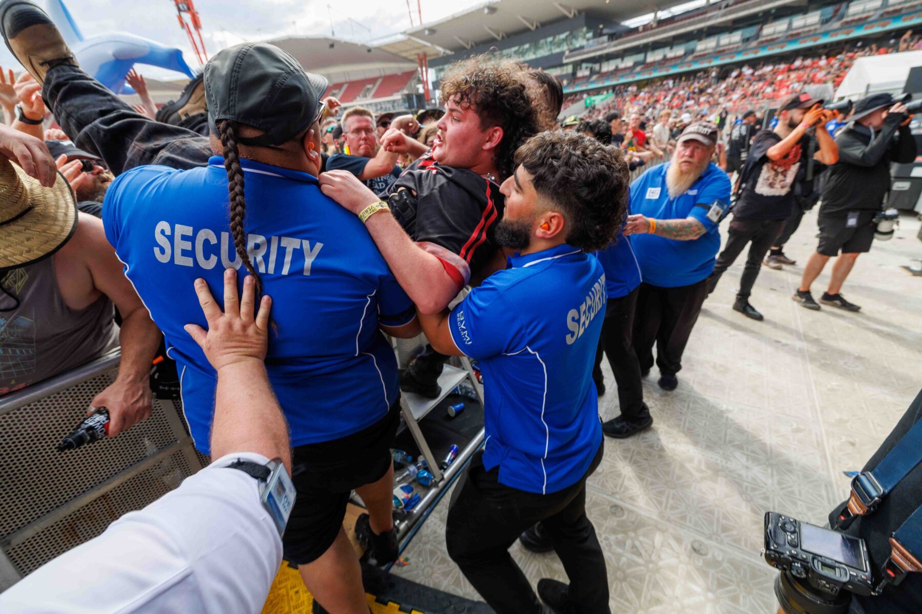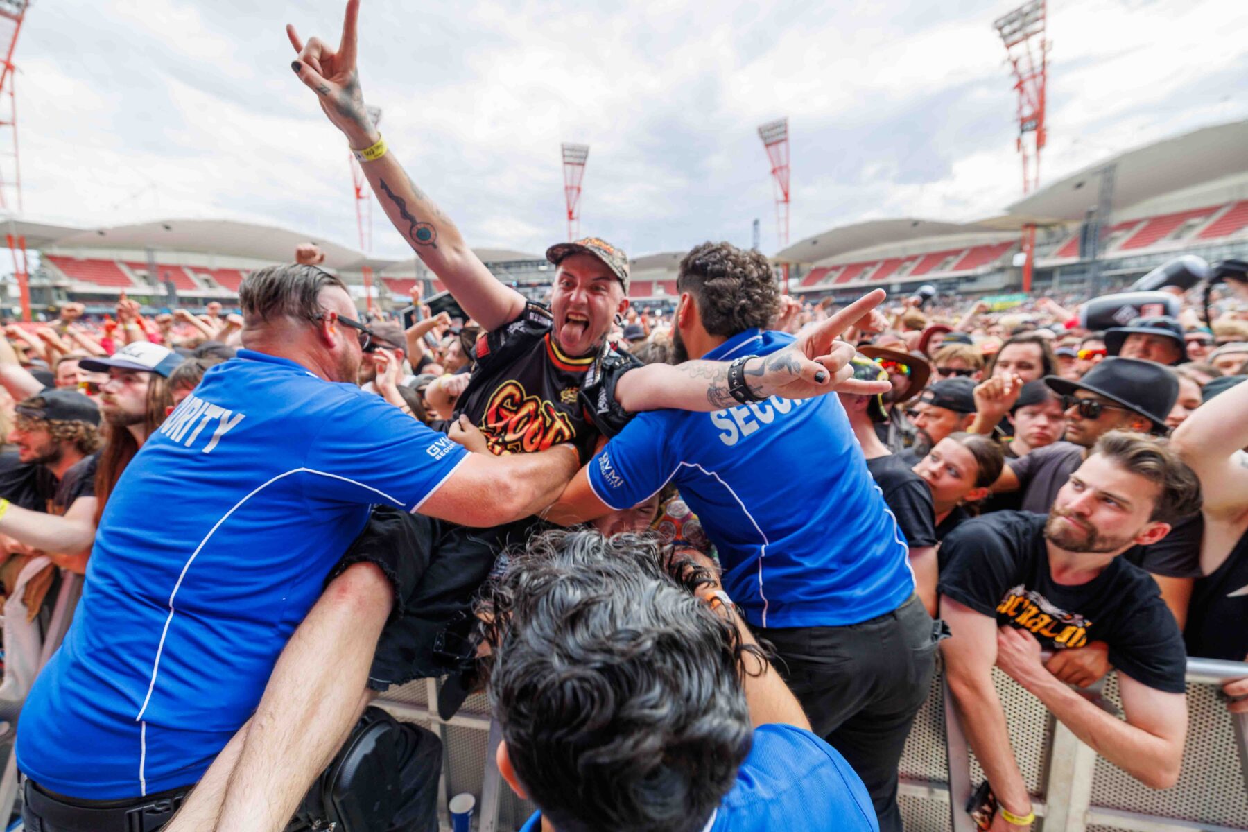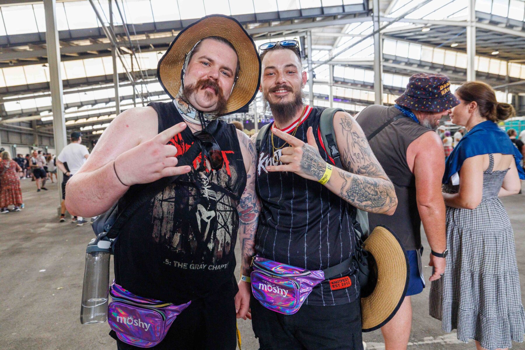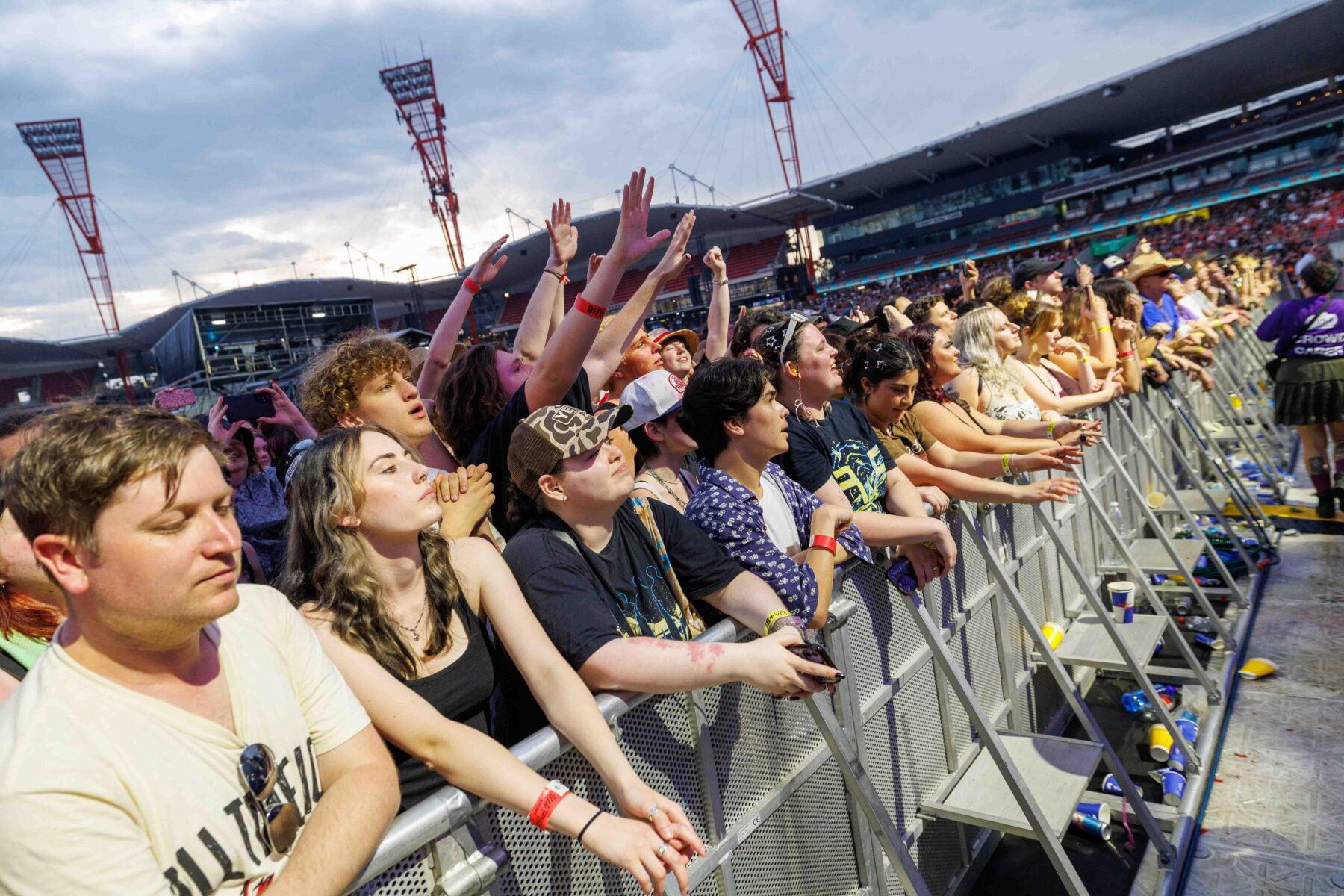 The day began under a merciless wave of heat, pushing everyone’s sunscreen to its absolute limit. Early sets became something of a badge of honour for both fans and bands, but the festival didn’t buckle. Hydration stations, shade pockets, and the occasional mist spray kept the masses alive long enough for the weather to finally turn in their favour. By late afternoon, a cool change drifted in, relieving the crowd and igniting a second wind that carried straight through the night. As temperatures dropped and stage lights rose, the Showgrounds transformed into a vibrant, electric nightscape—exactly the setting you want for a festival hitting its stride.