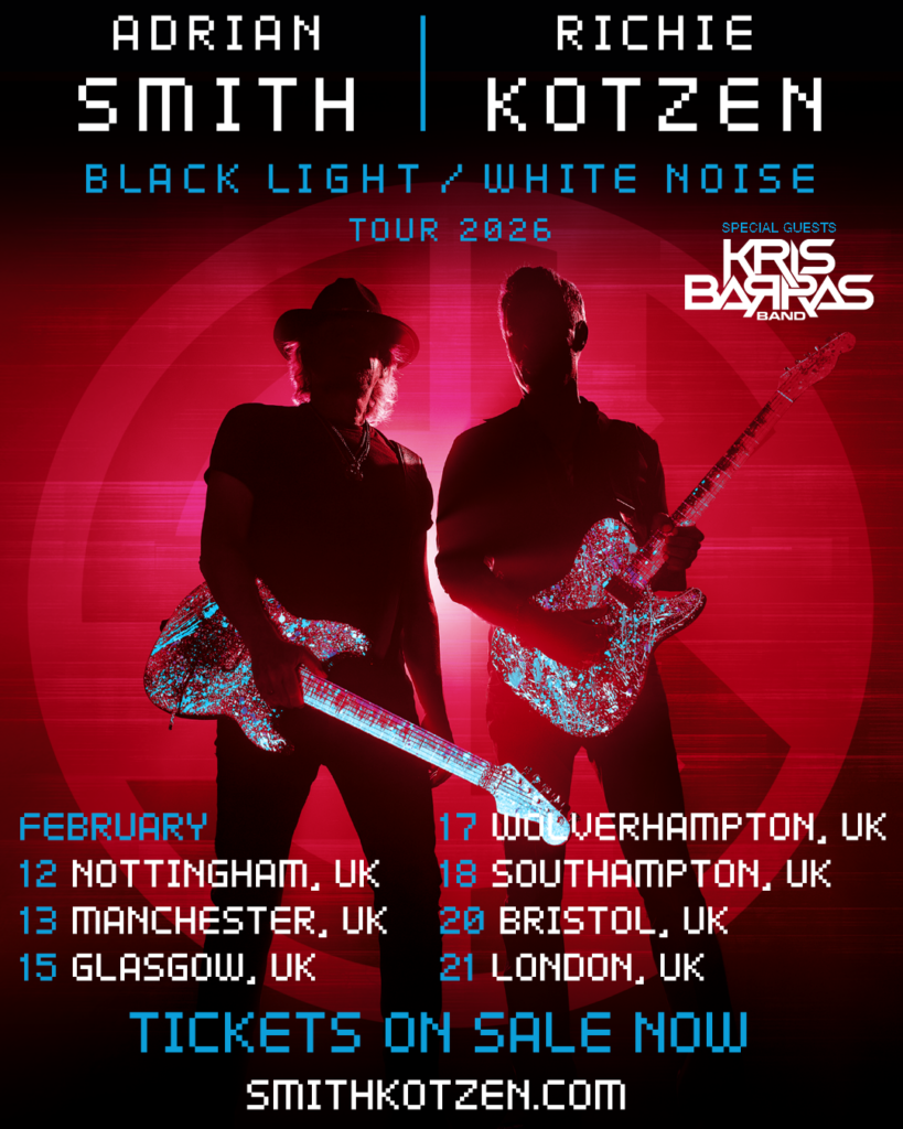 You can catch the Kris Barras Band on the road opening up for Smith/Kotzen, the musical collaboration between Iron Maiden’s Adrian Smith and The Winery Dogs’ Richie Kotzen. The 9-date UK tour kicks off on Thursday 12th February and takes in the sights of Nottingham, Manchester, Newcastle, Glasgow, Wolverhampton, Southampton, Crumlin, Bristol, and finishes up on the historic stage of London’s Shepherd’s Bush Empire.