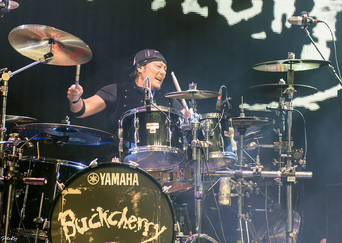 So, filled up and fuelled for the next hour I’m mildly chuffed at the ACDC/Rainbow hash which welcomed Buckcherry on stage. These guys have only a 12 song set, again with no encore, which is surprising again given the magnitude of popularity of the main song we’re waiting for. There’s some technical issues with the vocal for the first couple of songs though so it was mostly only the band which were listenable to for “Lit Up” and “Roar Like Thunder”, although the lyric “love the cocaine” was still curiously discernible in the former of the aforementioned songs. Given my abhorrence of drugs and bad sound setups, this did not bode well at all for me, however the audio problems were reasonably swiftly ironed out, and after a little research it seems the singer, Josh Todd, has actually remained clean and sober for 31 years now, and yet still remains suitably exuberant as a frontman, impressive given he’s been at this for a similar amount of years, and as the only remaining original member it’s a testament to how well this has served him. Well played Josh! That being said, I was entertained to note visual similarity to Willem DaFoe in Antichrist! Make of that what you will!