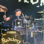 “So Hott” gave the first real solo opportunity but it’s “Ridin” that gets the audience going and it’s no coincidence that it’s now that the vocal is cleaned up. “Let It Burn” is notable for borrowing swathes from “Ace of Spades” in this live performance, which is never going to go down badly with a rock crowd whose average age here is probably 47-53! Similarly “Come On” is borrowing from AcDc’s “Sin City” and they’re well placed as mid-set songs to keep a crowd interested. A solo and a backing drum beat that’s wild enough to question if the strobes are a tad too much keeps the tempo at a pace others might state is “high octane”, but you’ll find none of those overused cliches here! It actually served to lead into the only other song I’d heard before by Buckcherry, “Say Fuck it”! Again there’s notable enthusiasm from the crowd here too, and what it lacks in subtlety it makes up for in delivery! It looked a lot like the lead guitar role here was taken by the guitarist who up until now had been more of a rhythm player. I’d assume this was Billy Rowe, but I’m uncertain!